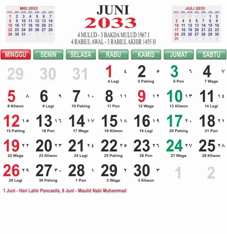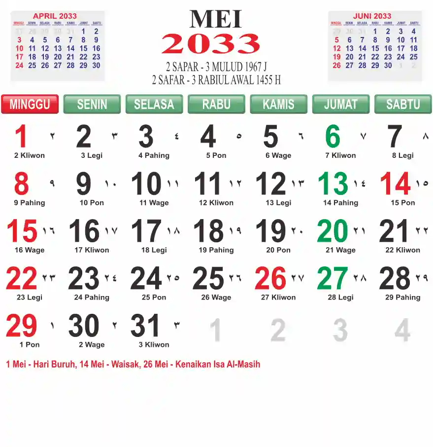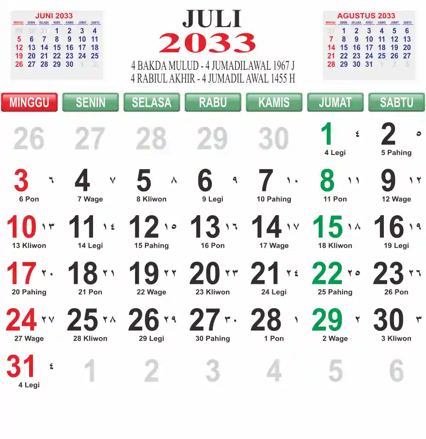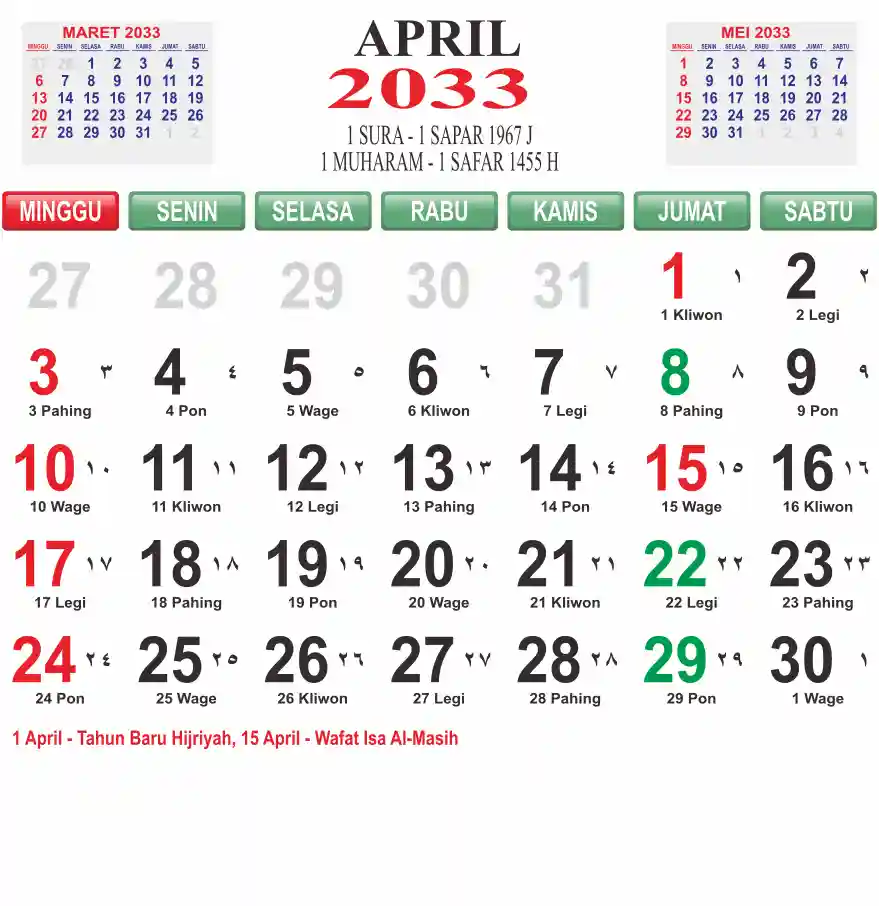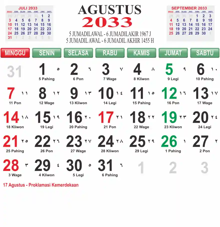 Template kalender 2033 lembaran besar jumbo yang mudah di baca dari jarak jauh. Kalender ini biasanya di cetak 1 lembar per bulan.