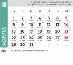 File template kalender 2033 yang editable (bisa anda edit) untuk CorelDRAW, format warna cmyk dan rgb untuk kebutuhan percetakan. Bisa custom hari libur (gunakan fitur tabel dibawah untuk edit).