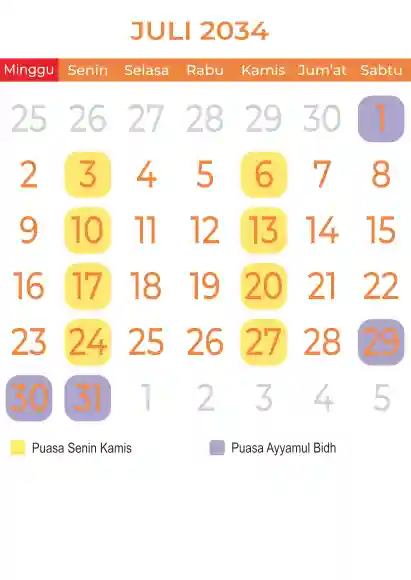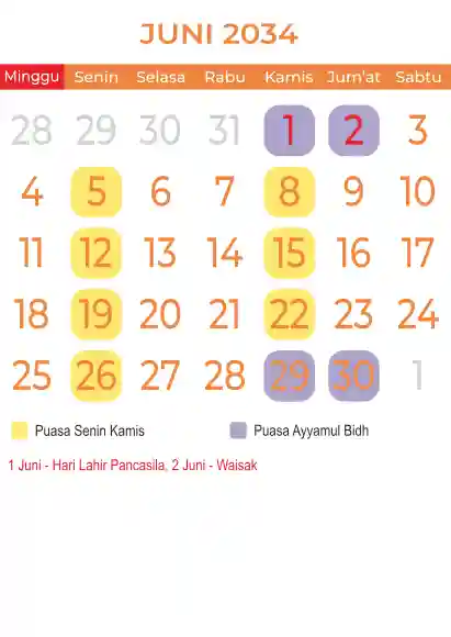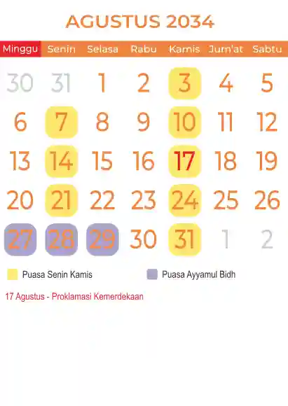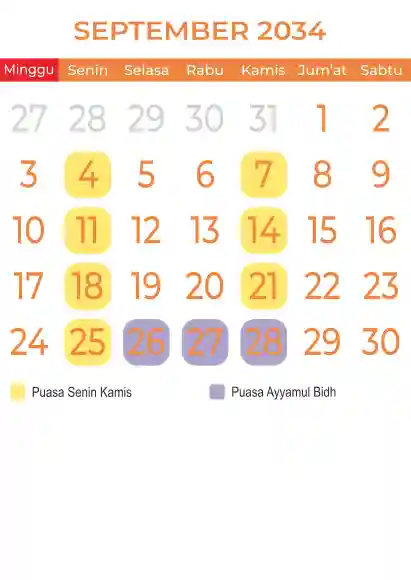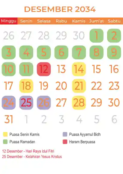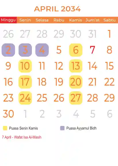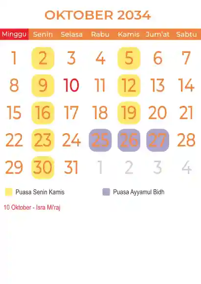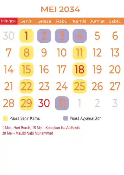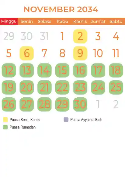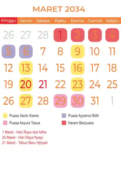 Template kalender puasa 2034, Versi yang lebih simple, cocok sekali buat anda yang ingin cetak kalender yang bermanfat buat umat.