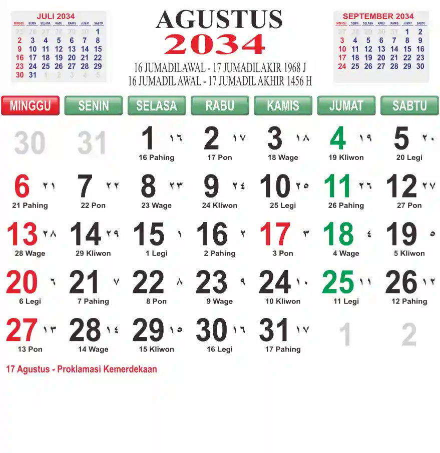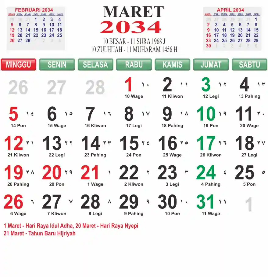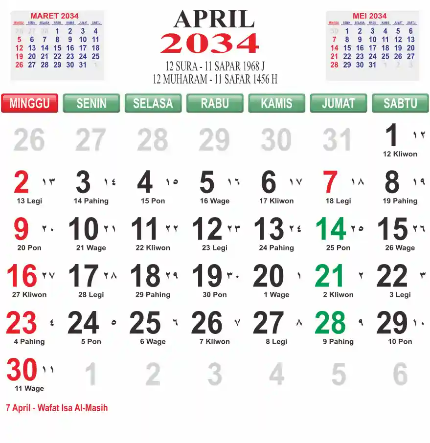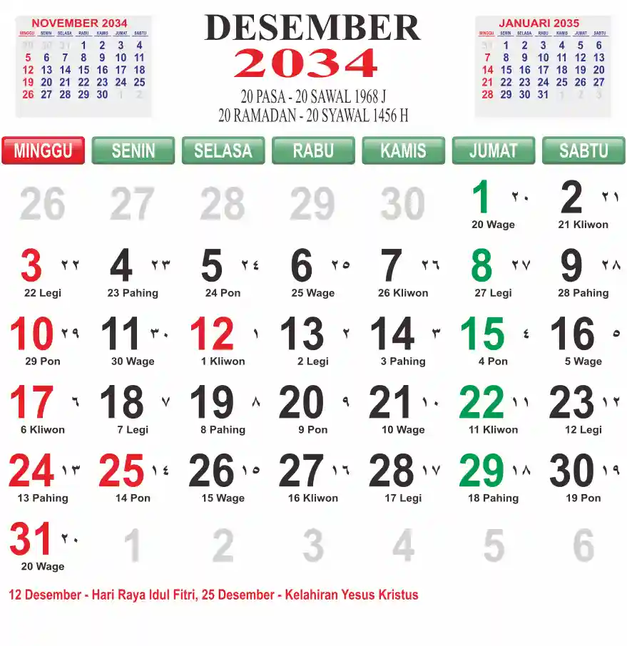 Template kalender 2034 lembaran besar jumbo yang mudah di baca dari jarak jauh. Kalender ini biasanya di cetak 1 lembar per bulan.