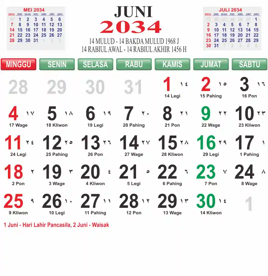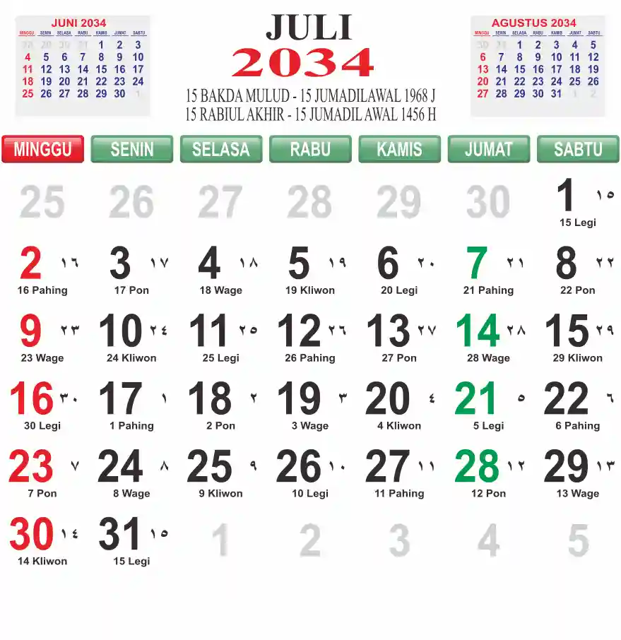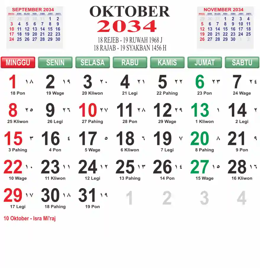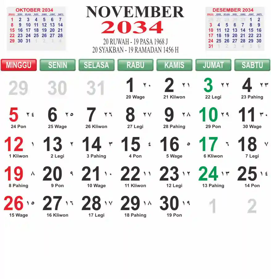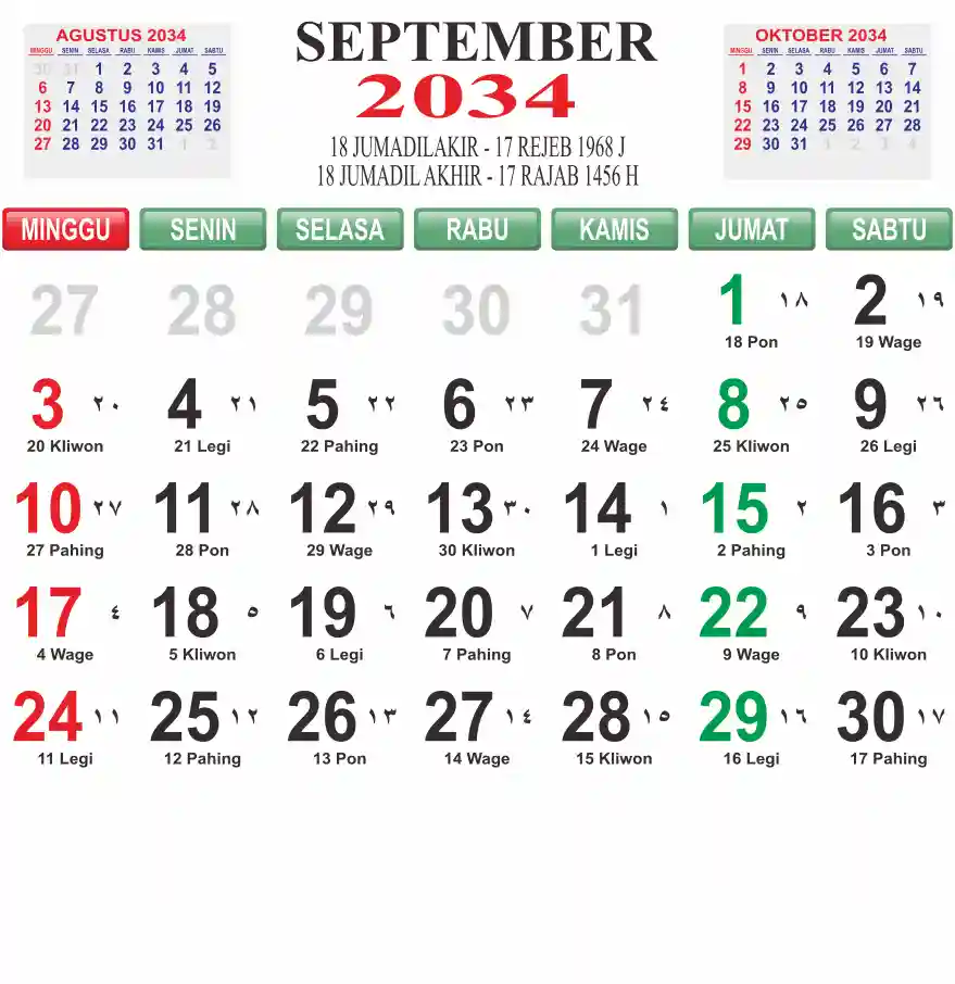 Template kalender 2034 lembaran besar jumbo yang mudah di baca dari jarak jauh. Kalender ini biasanya di cetak 1 lembar per bulan.