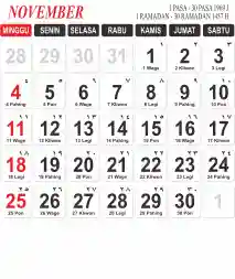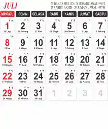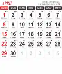 Template Kalender Jawa + Hijriah Vector