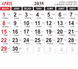 Tema kalender 2035 yang cocok buat desain kalender yang lebih lebar, cocok buat kalender kantor atau desain yang lebih minimalis.