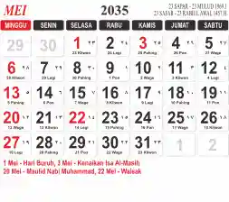 List hari libur tahun 2035 pada Tema 3 (Wide)