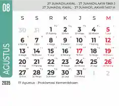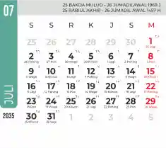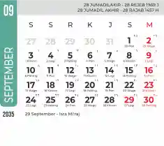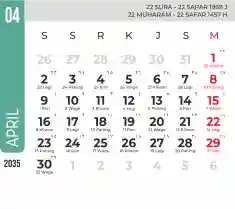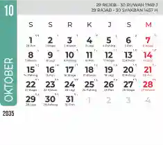 Template kalender 2035 dengan konsep minimalis modern dengan warna yang soft, cocok sekali buat kantor / bisnis seperti bank.