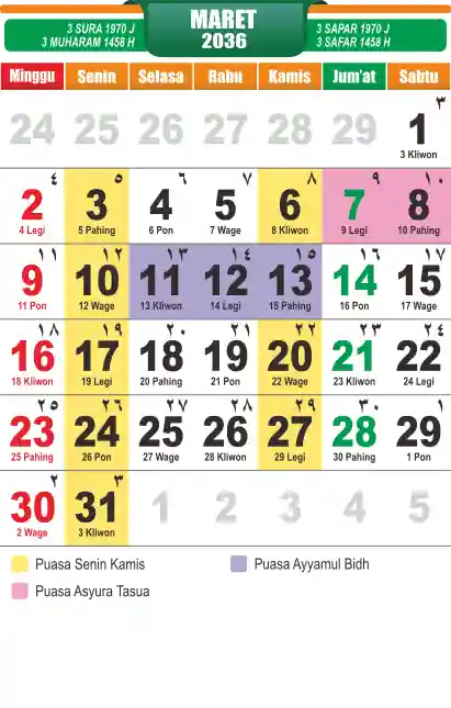 Template kalender puasa 2036, cocok sekali buat anda yang ingin cetak kalender yang bermanfat buat umat.