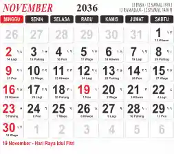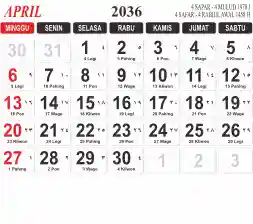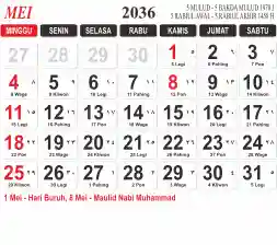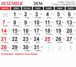 List hari libur tahun 2036 pada Tema 3 (Wide)