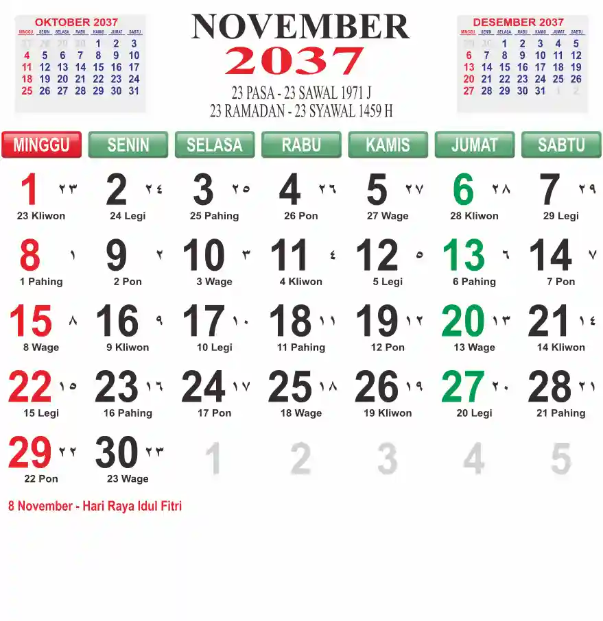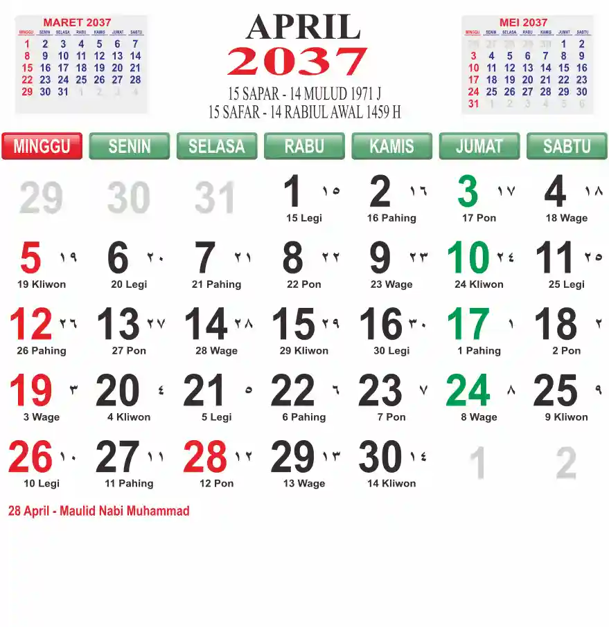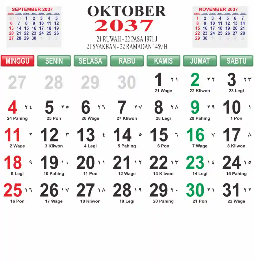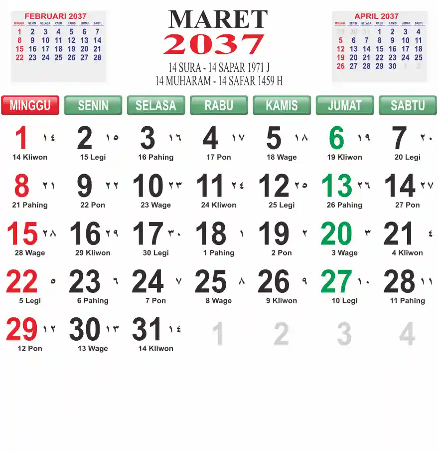 Template kalender 2037 lembaran besar jumbo yang mudah di baca dari jarak jauh. Kalender ini biasanya di cetak 1 lembar per bulan.