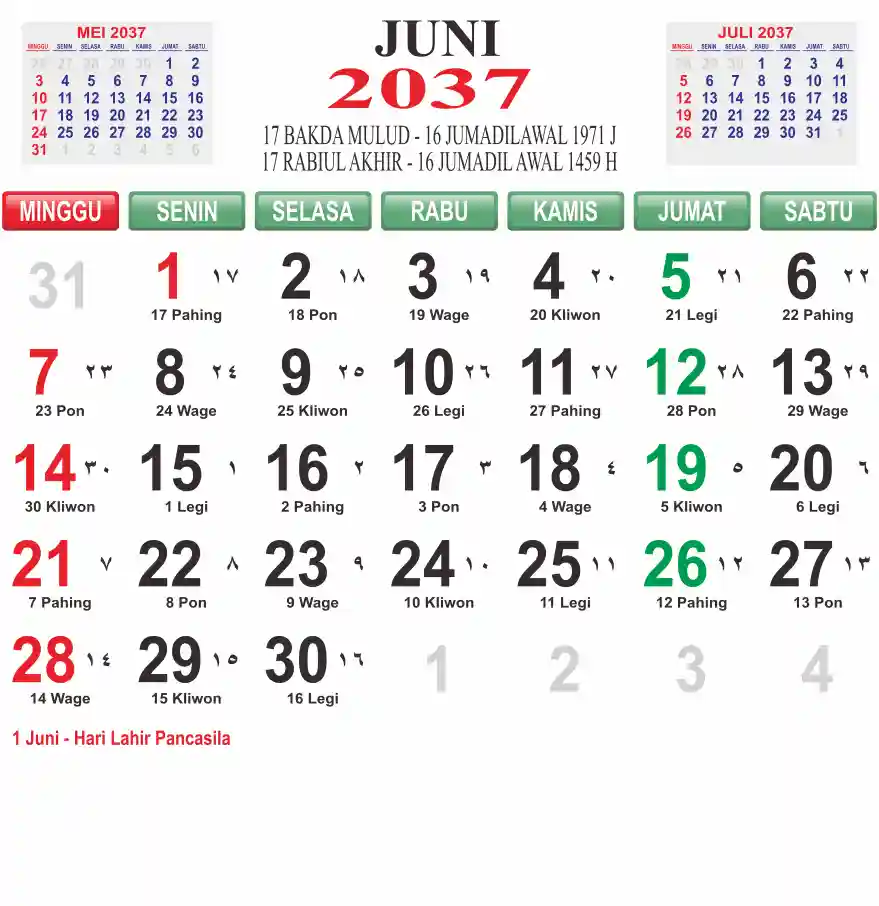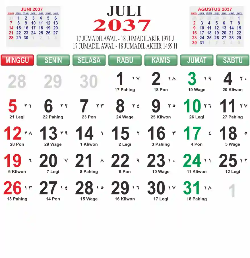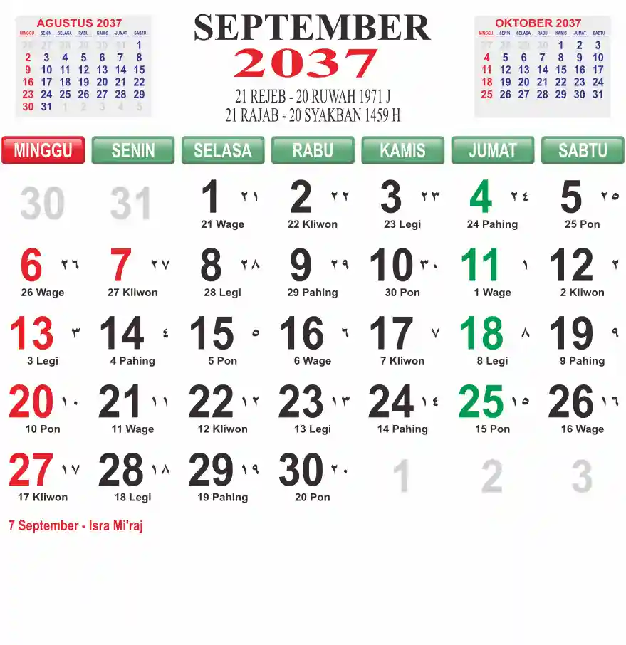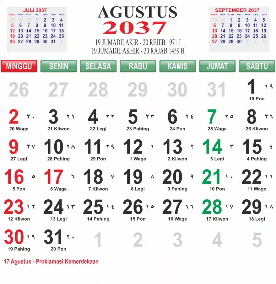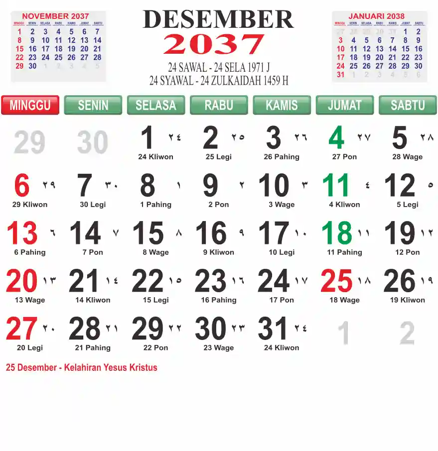 Template kalender 2037 lembaran besar jumbo yang mudah di baca dari jarak jauh. Kalender ini biasanya di cetak 1 lembar per bulan.