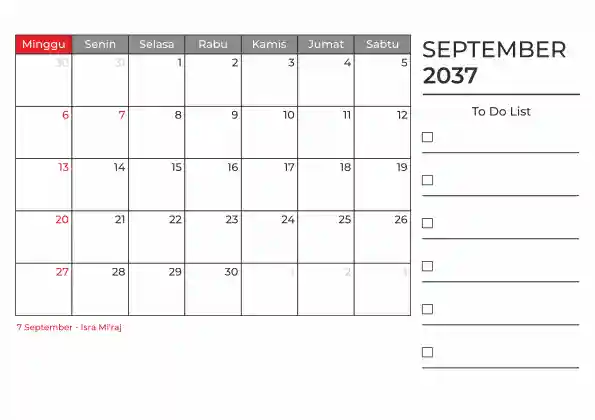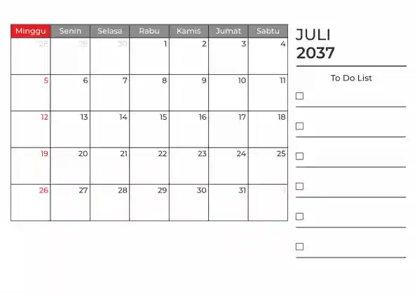 Template kalender 2037 duduk planner. Ada space kosong yang bisa di isi untuk menulis catatan dan ada space untuk menulis to do list.