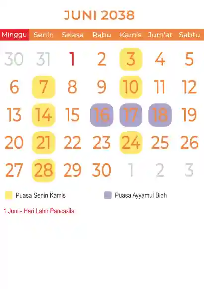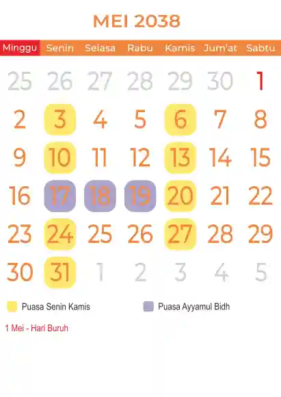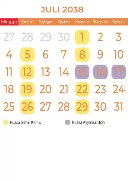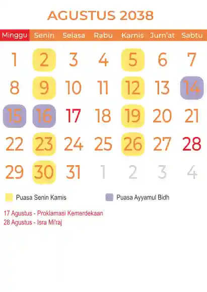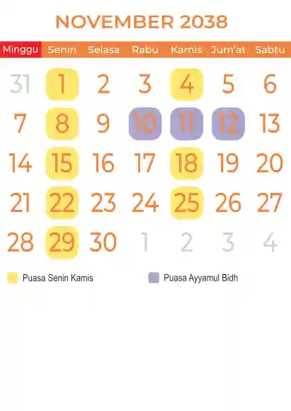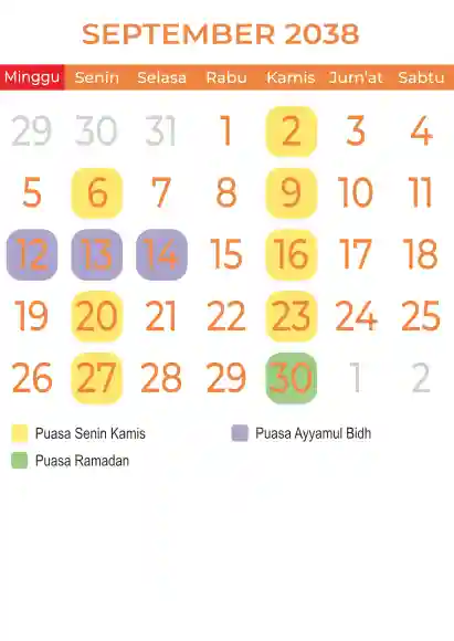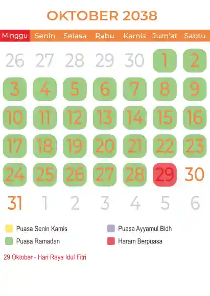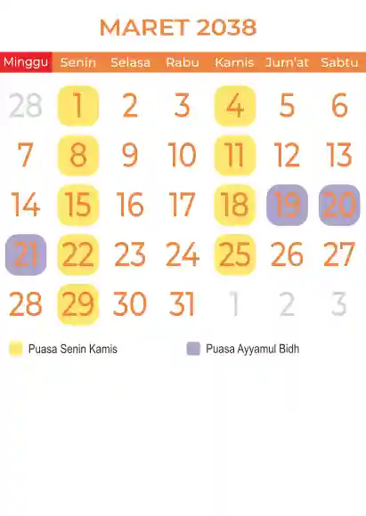 Template kalender puasa 2038, Versi yang lebih simple, cocok sekali buat anda yang ingin cetak kalender yang bermanfat buat umat.