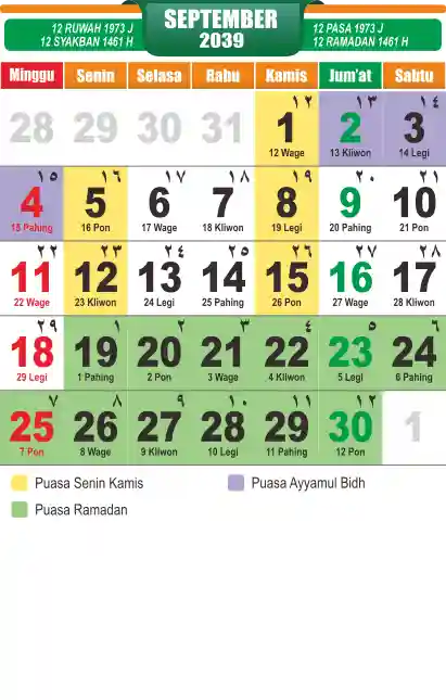 Template kalender puasa 2039, cocok sekali buat anda yang ingin cetak kalender yang bermanfat buat umat.