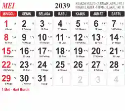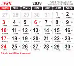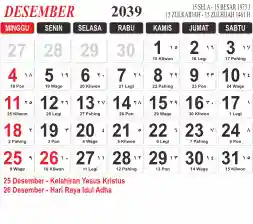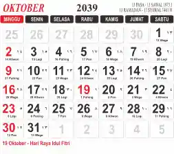 List hari libur tahun 2039 pada Tema 3 (Wide)