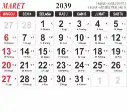 Tema kalender 2039 yang cocok buat desain kalender yang lebih lebar, cocok buat kalender kantor atau desain yang lebih minimalis.