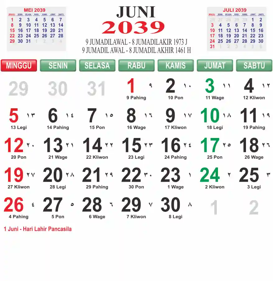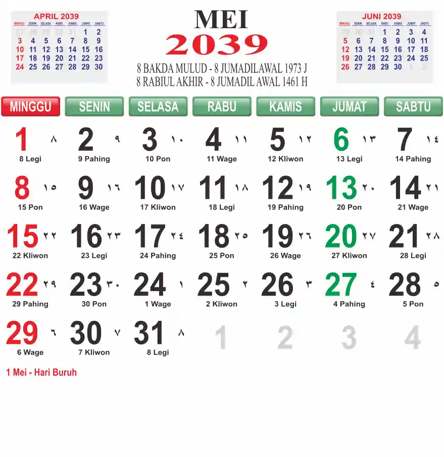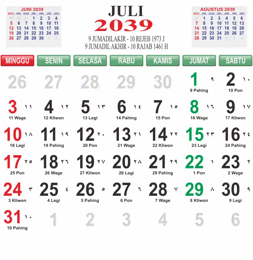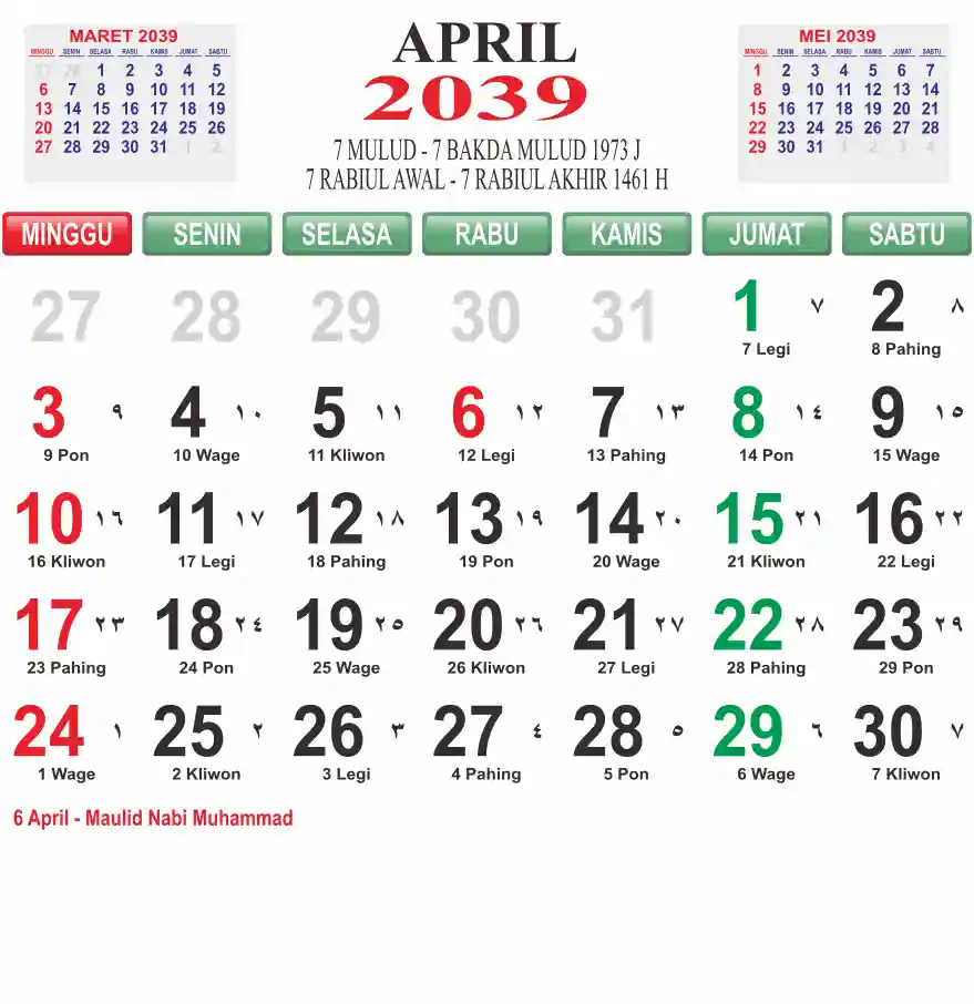 Template kalender 2039 lembaran besar jumbo yang mudah di baca dari jarak jauh. Kalender ini biasanya di cetak 1 lembar per bulan.