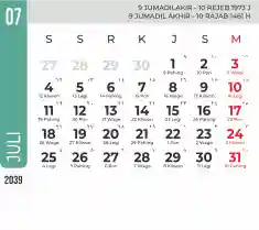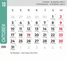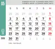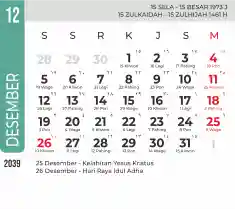 List hari libur tahun 2039 pada Tema 7