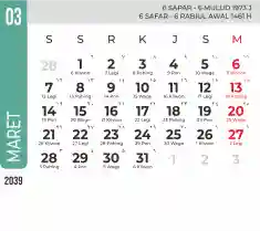 Template kalender 2039 dengan konsep minimalis modern dengan warna yang soft, cocok sekali buat kantor / bisnis seperti bank.