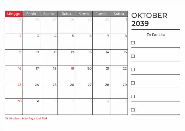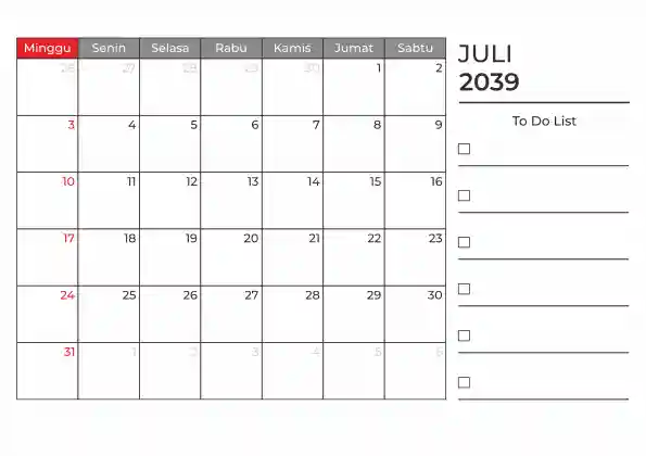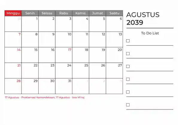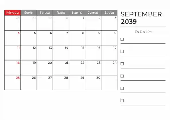 Template kalender 2039 duduk planner. Ada space kosong yang bisa di isi untuk menulis catatan dan ada space untuk menulis to do list.
