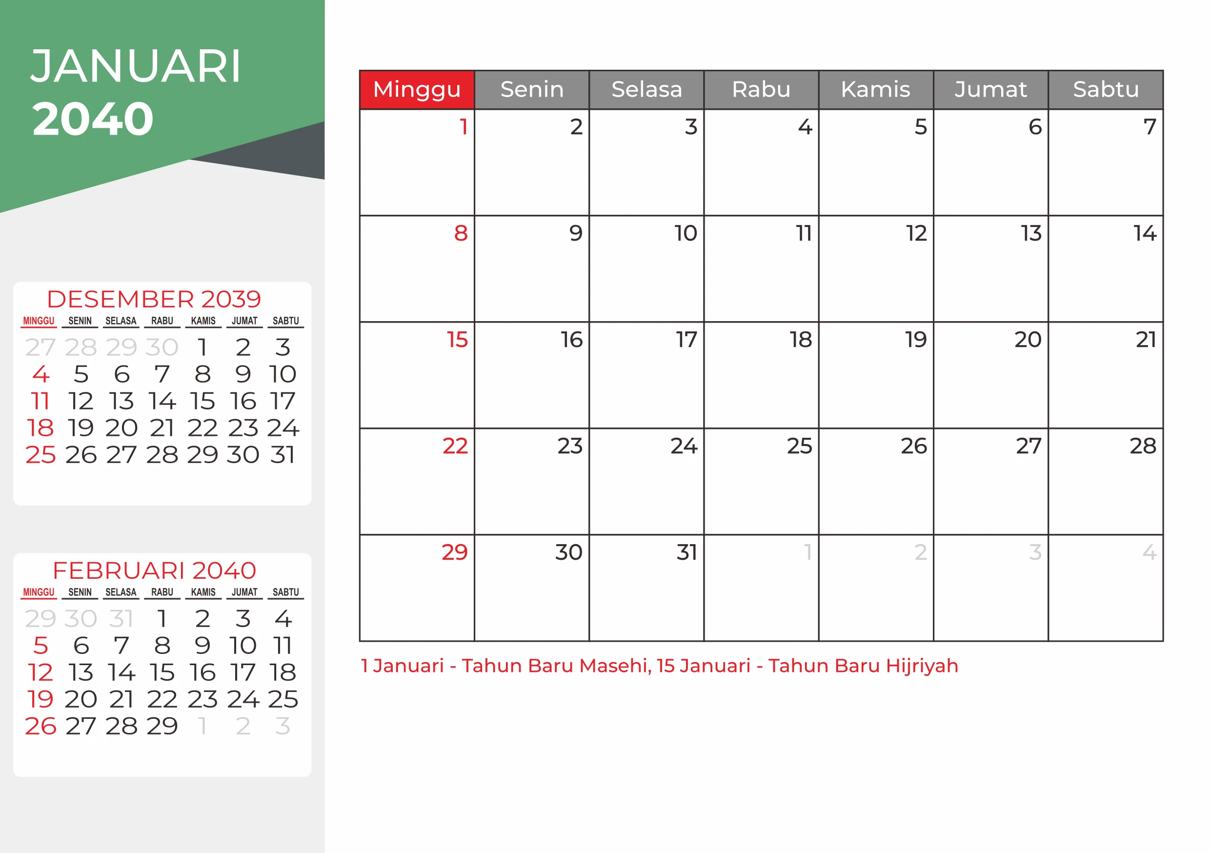 Dapatkan akses vector template kalender 2040 dengan berbagai tema, file editable, warna CMYK / RGB untuk CorelDRAW.