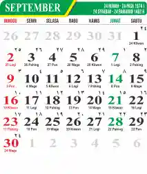 Tema kalender 2040 yang nuansa Islami yang cocok buat pondok pesantren atau lembaga keagamaan. Menggunakan font standar Times New Roman yang mudah dibaca.
