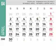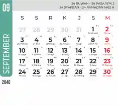 Template kalender 2040 dengan konsep minimalis modern dengan warna yang soft, cocok sekali buat kantor / bisnis seperti bank.