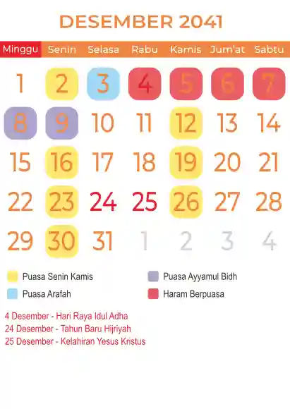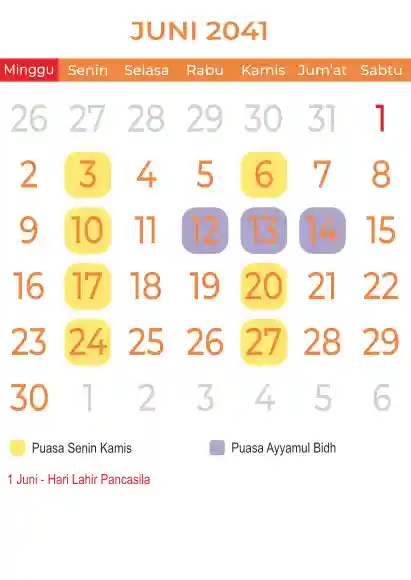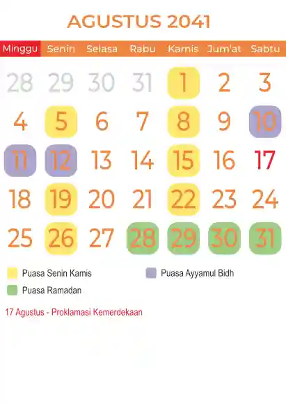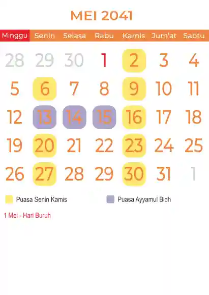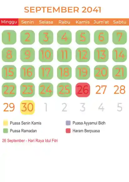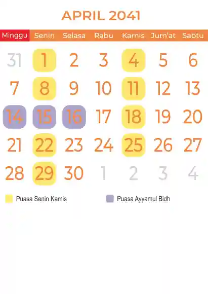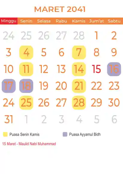 Template kalender puasa 2041, Versi yang lebih simple, cocok sekali buat anda yang ingin cetak kalender yang bermanfat buat umat.