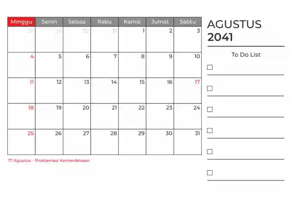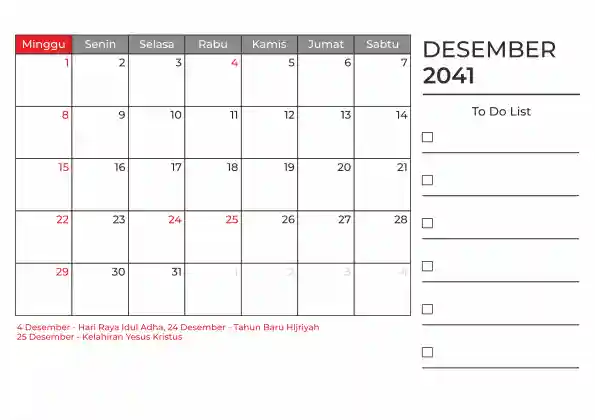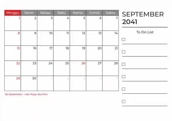 Template kalender 2041 duduk planner. Ada space kosong yang bisa di isi untuk menulis catatan dan ada space untuk menulis to do list.
