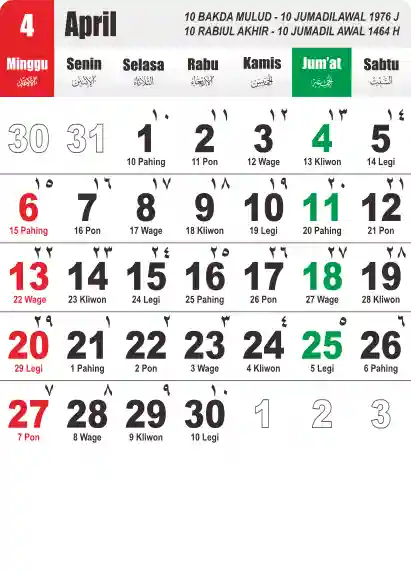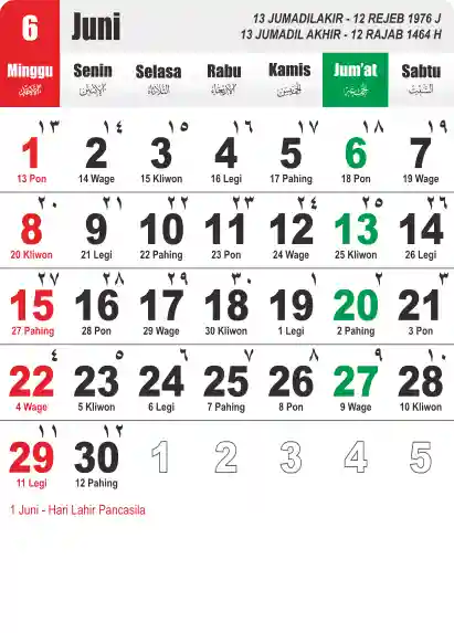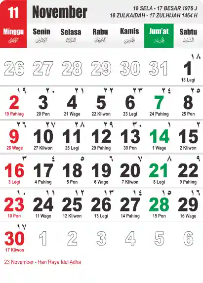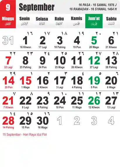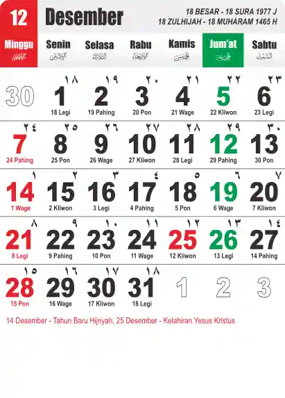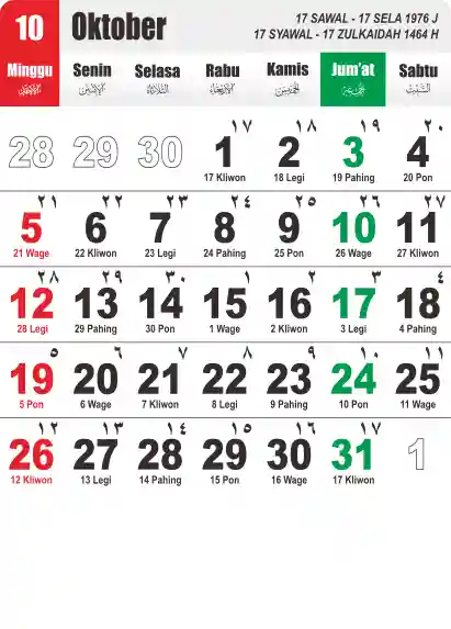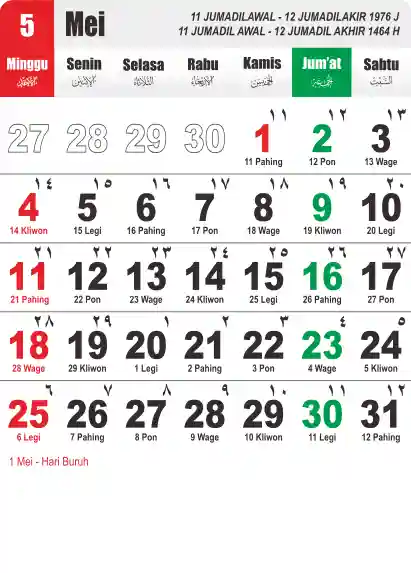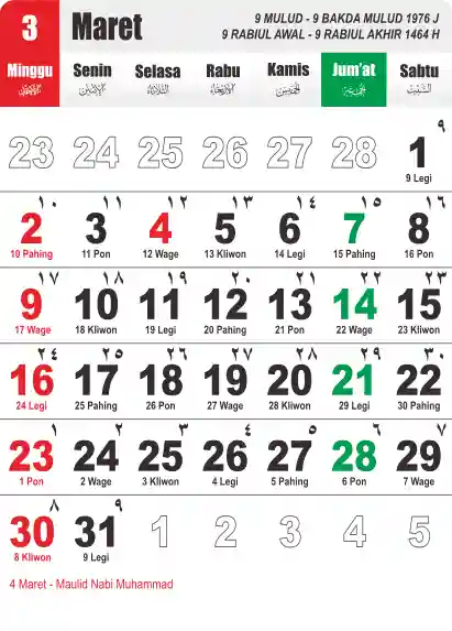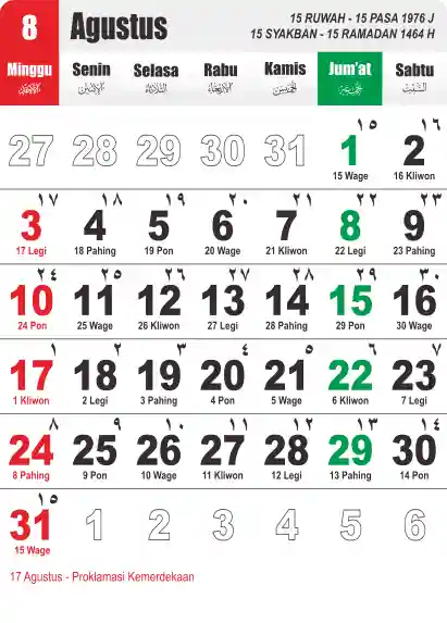 Template Kalender Jawa + Hijriah Vector