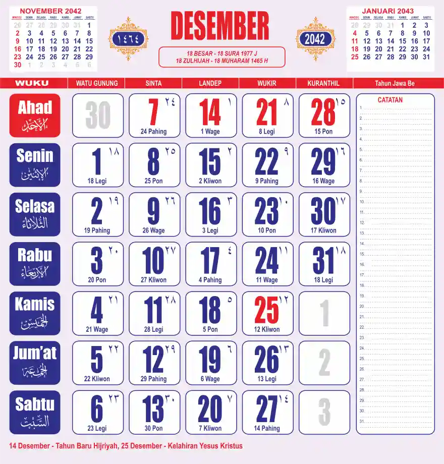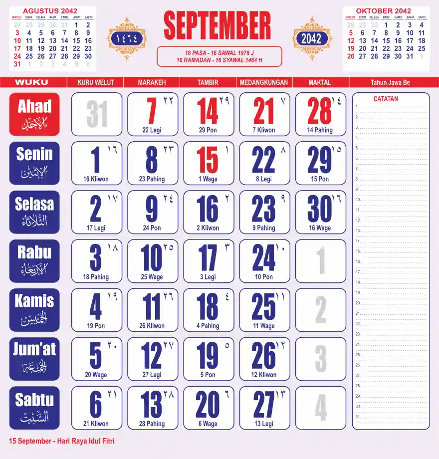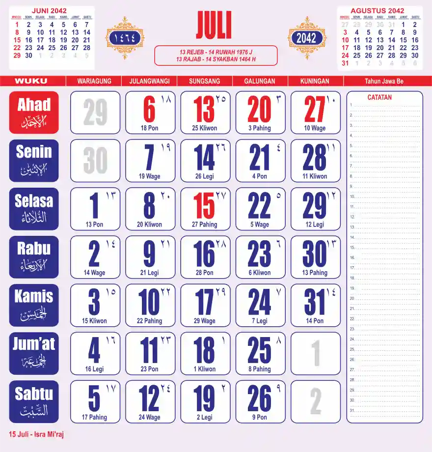 Template kalender 2042 lembaran besar jumbo yang sering dipakai oleh masyarakat jawa lengkap dengan wuku. Kalender ini biasanya di cetak 1 lembar per bulan.