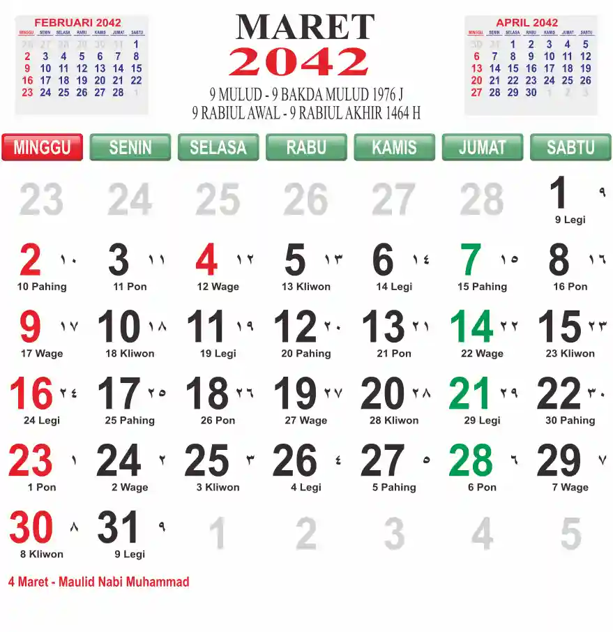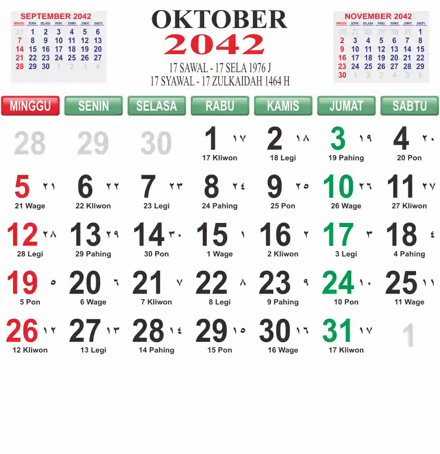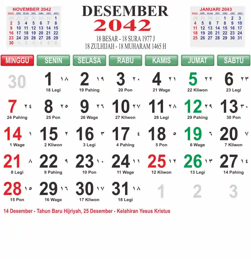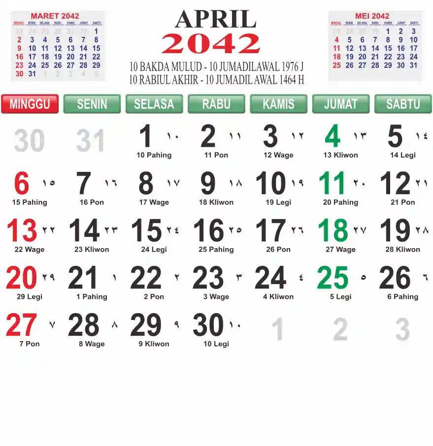 Template kalender 2042 lembaran besar jumbo yang mudah di baca dari jarak jauh. Kalender ini biasanya di cetak 1 lembar per bulan.
