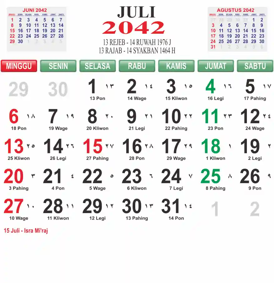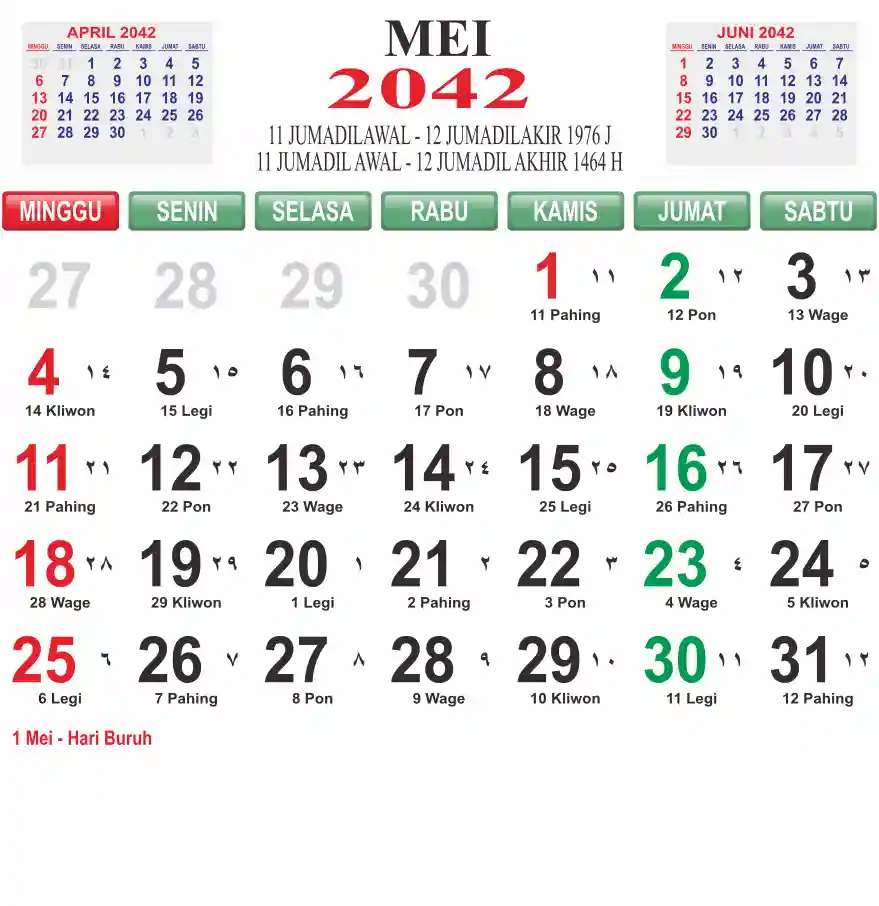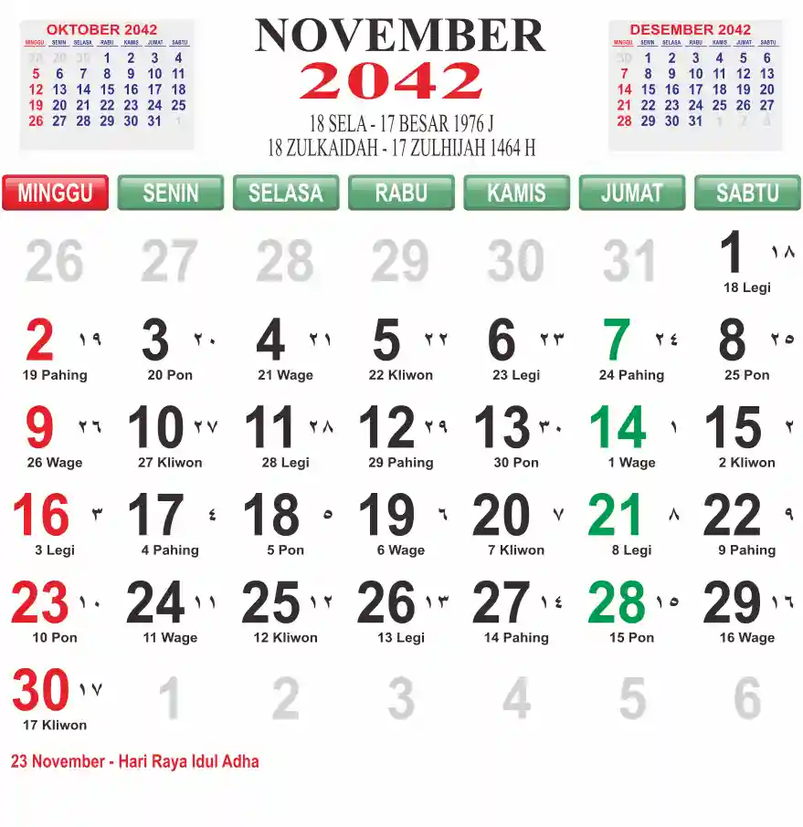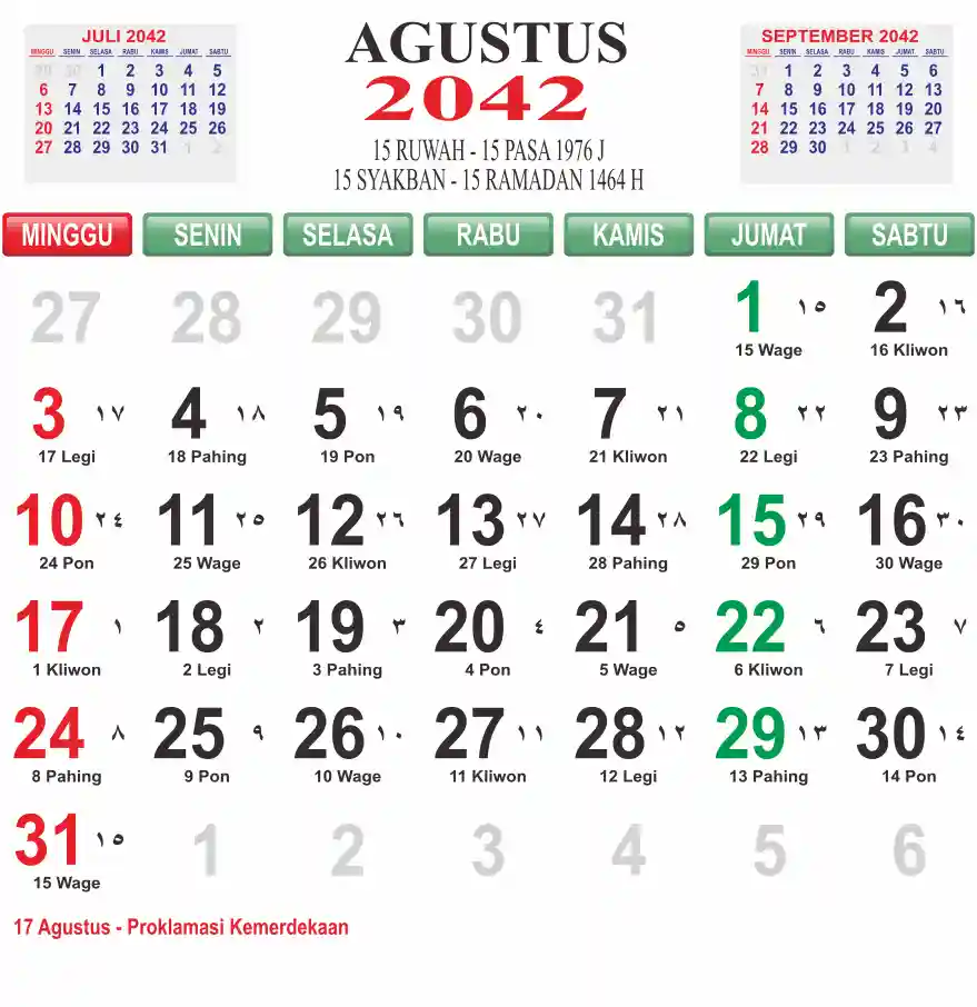Template kalender 2042 lembaran besar jumbo yang mudah di baca dari jarak jauh. Kalender ini biasanya di cetak 1 lembar per bulan.