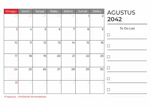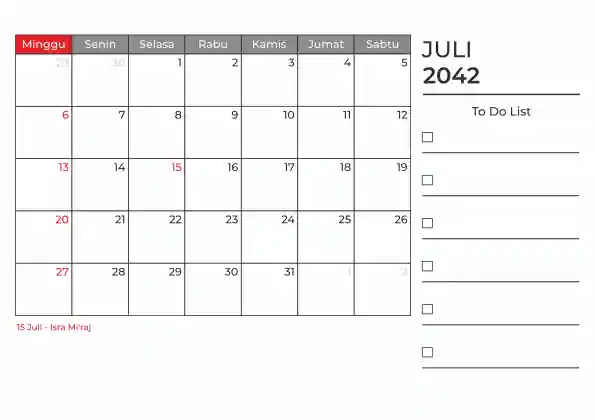 Template kalender 2042 duduk planner. Ada space kosong yang bisa di isi untuk menulis catatan dan ada space untuk menulis to do list.