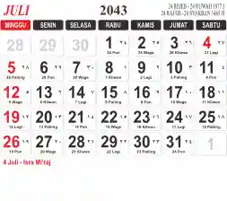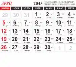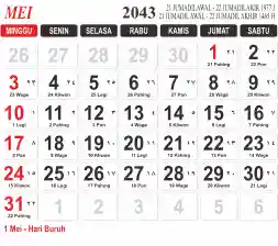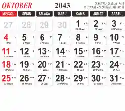 List hari libur tahun 2043 pada Tema 3 (Wide)