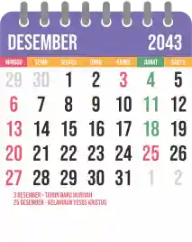 Template kalender 2043 yang bertemakan lucu dan moderen. Bentuknya simple tanpa tanggal hijriah dan tanggal jawa. Cocok buat kebutuhan kalender yang sifatnya universal.