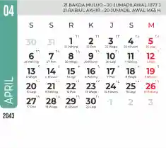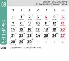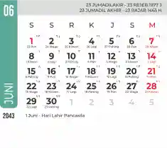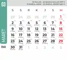 Template kalender 2043 dengan konsep minimalis modern dengan warna yang soft, cocok sekali buat kantor / bisnis seperti bank.