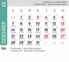 File template kalender 2043 yang editable (bisa anda edit) untuk CorelDRAW, format warna cmyk dan rgb untuk kebutuhan percetakan. Bisa custom hari libur (gunakan fitur tabel dibawah untuk edit).