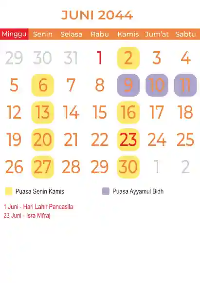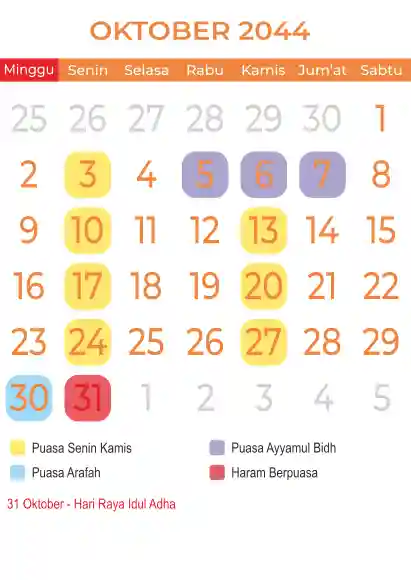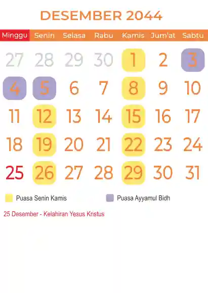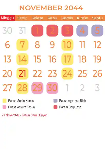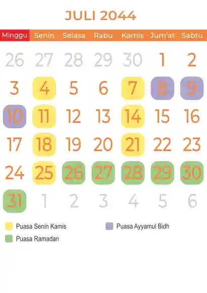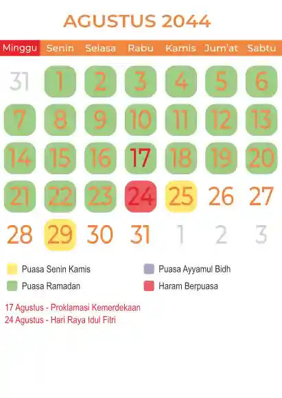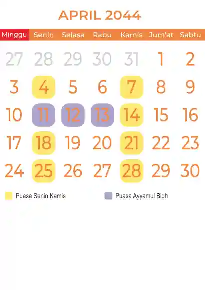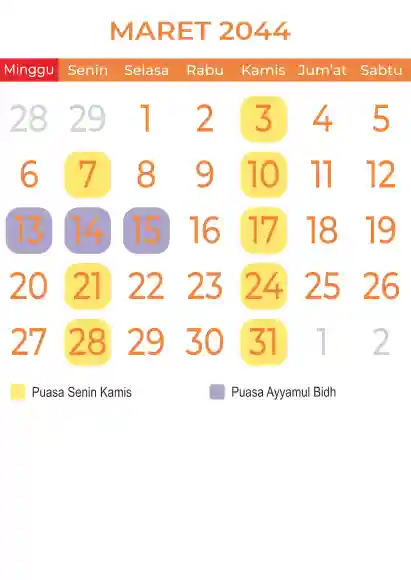 Template kalender puasa 2044, Versi yang lebih simple, cocok sekali buat anda yang ingin cetak kalender yang bermanfat buat umat.