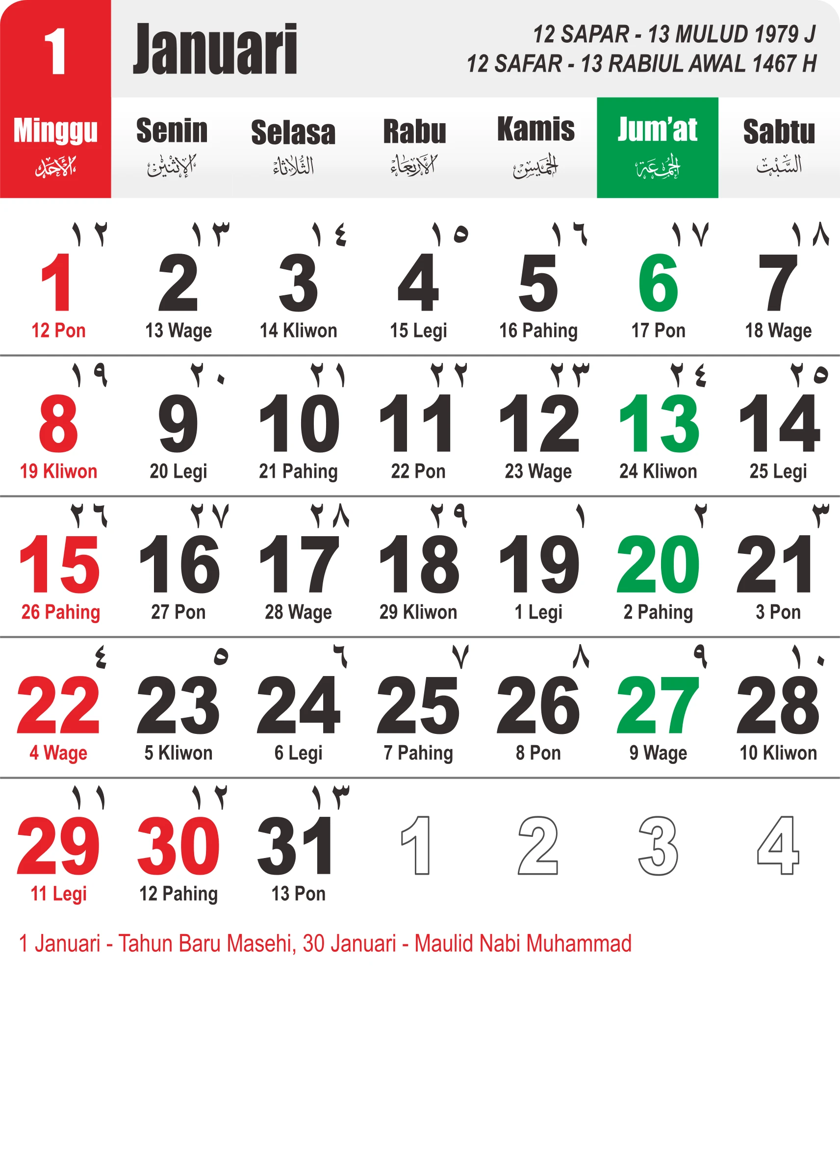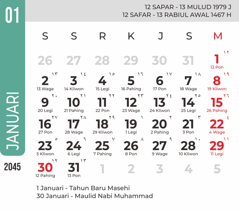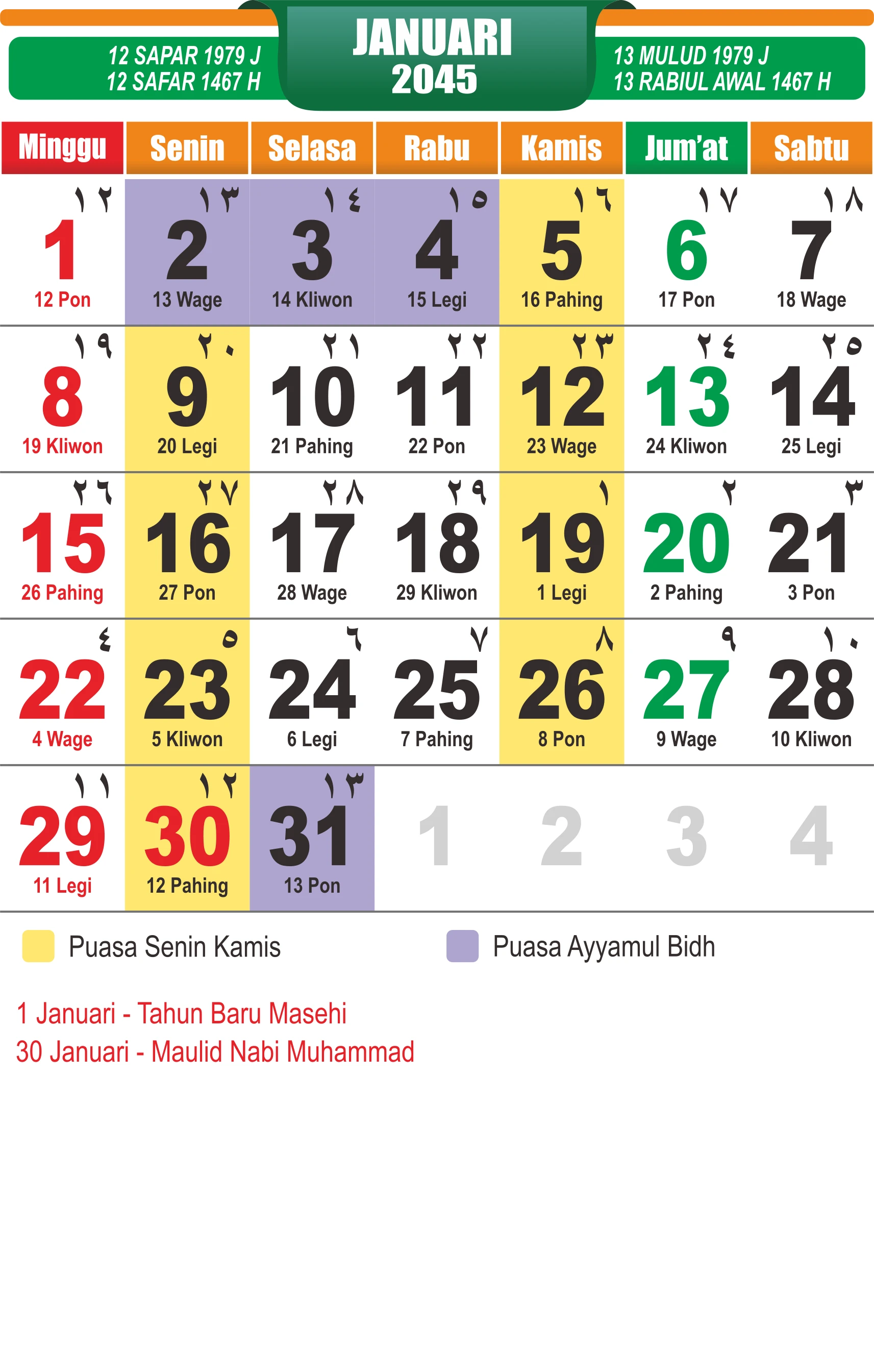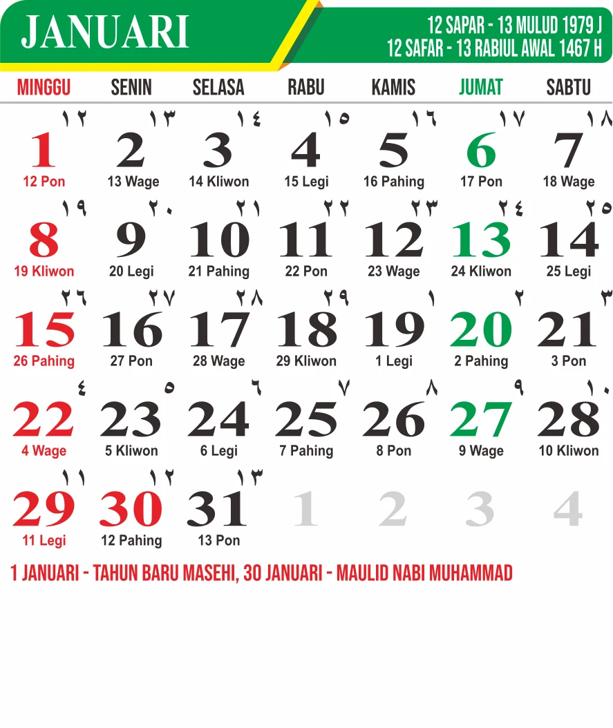 Template Kalender Jawa + Hijriah Vector
