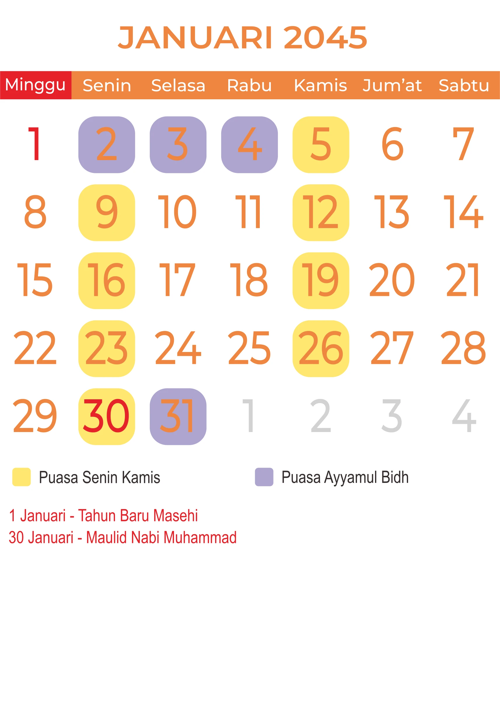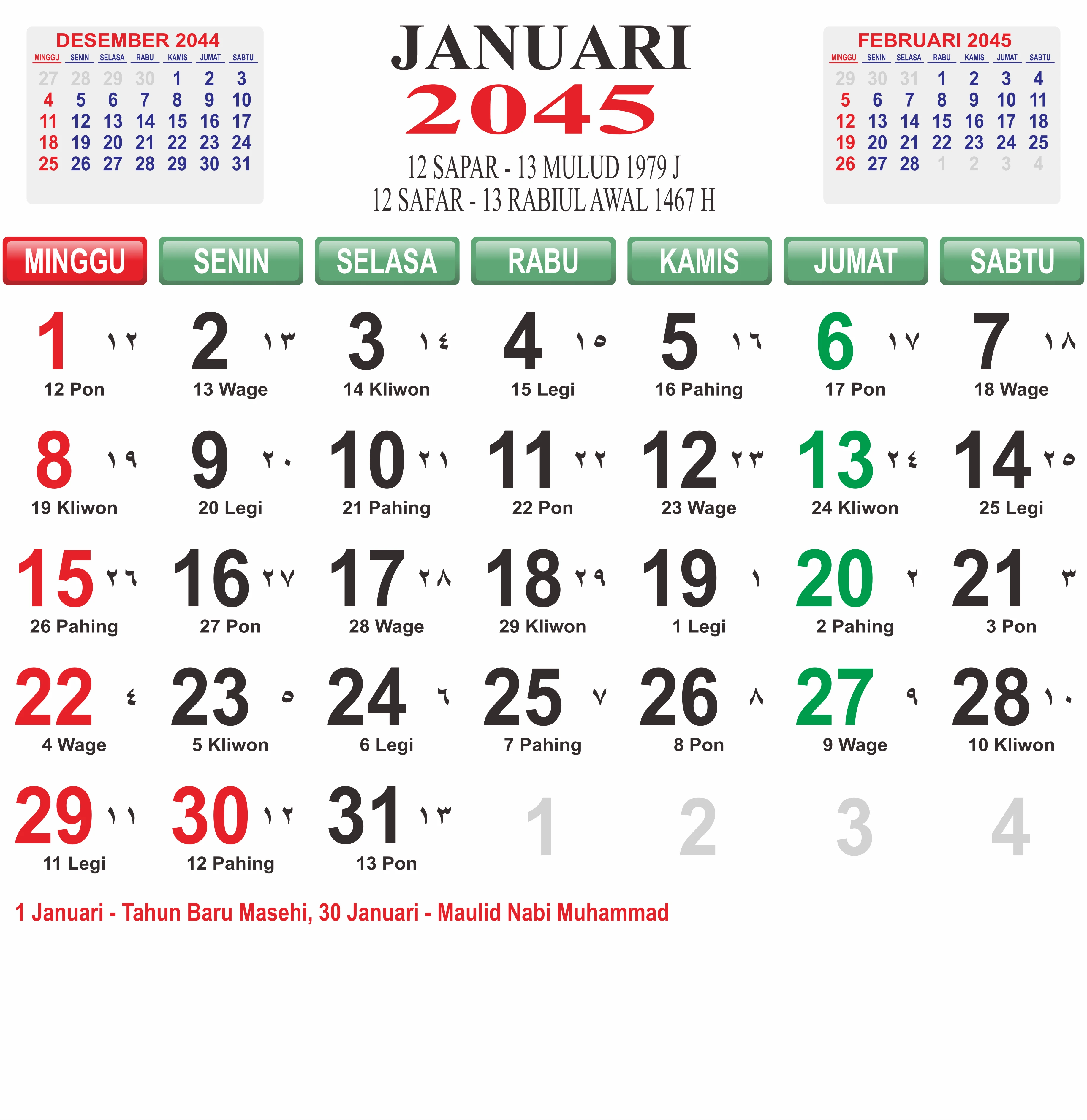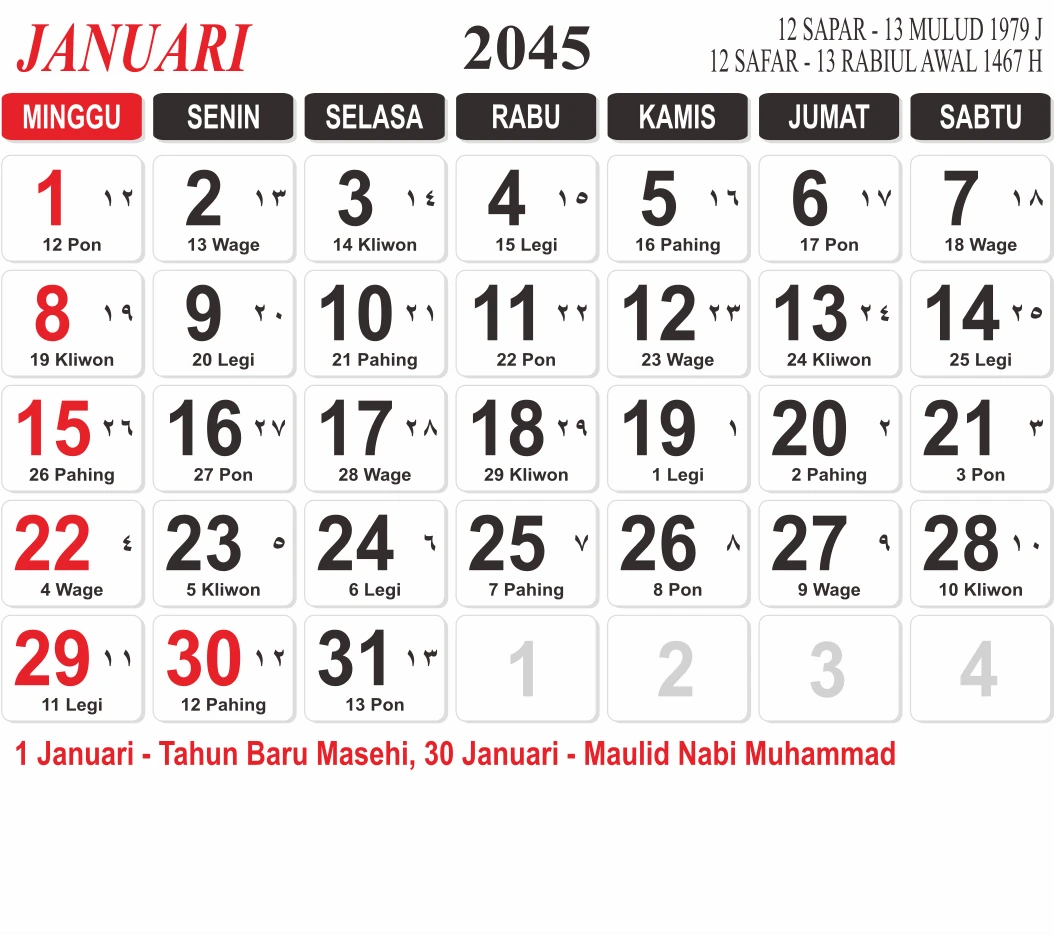 Template Kalender Jawa + Hijriah Vector