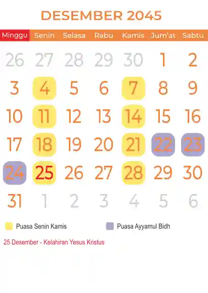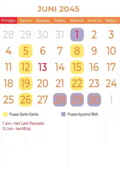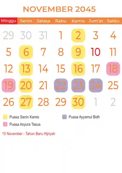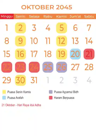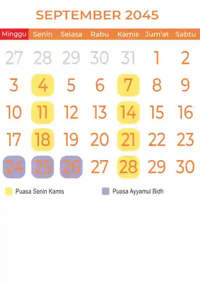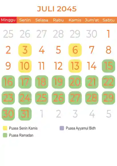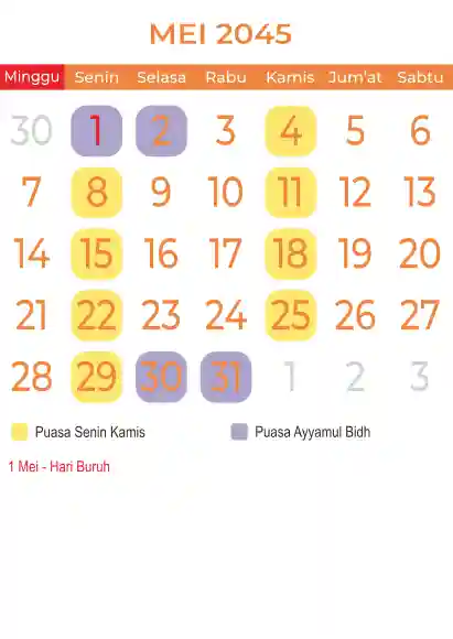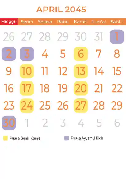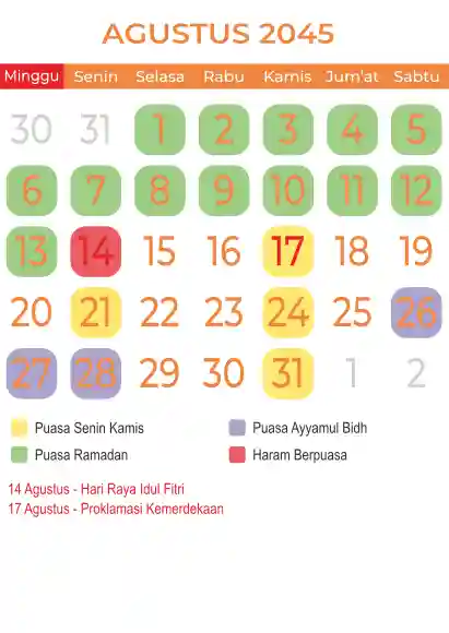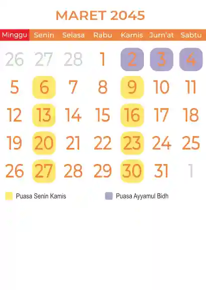 Template kalender puasa 2045, Versi yang lebih simple, cocok sekali buat anda yang ingin cetak kalender yang bermanfat buat umat.