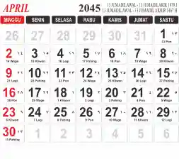 Tema kalender 2045 yang cocok buat desain kalender yang lebih lebar, cocok buat kalender kantor atau desain yang lebih minimalis.