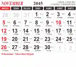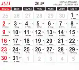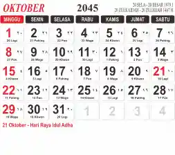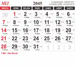List hari libur tahun 2045 pada Tema 3 (Wide)