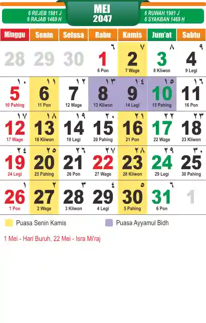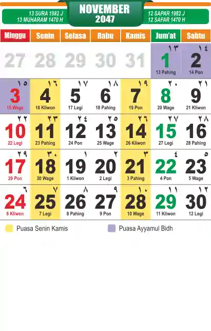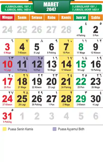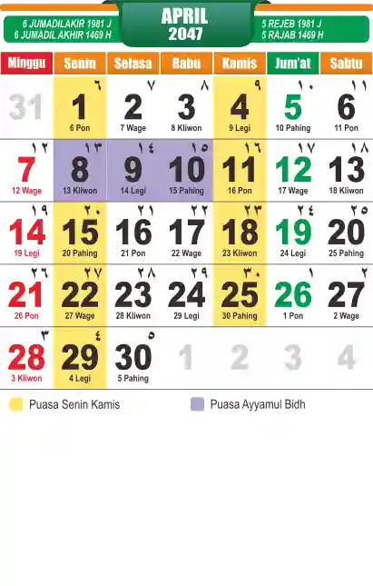 Template kalender puasa 2047, cocok sekali buat anda yang ingin cetak kalender yang bermanfat buat umat.