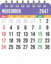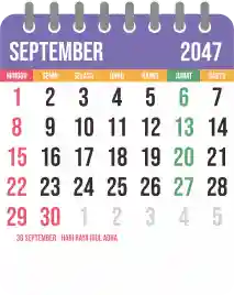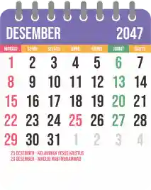 Template kalender 2047 yang bertemakan lucu dan moderen. Bentuknya simple tanpa tanggal hijriah dan tanggal jawa. Cocok buat kebutuhan kalender yang sifatnya universal.