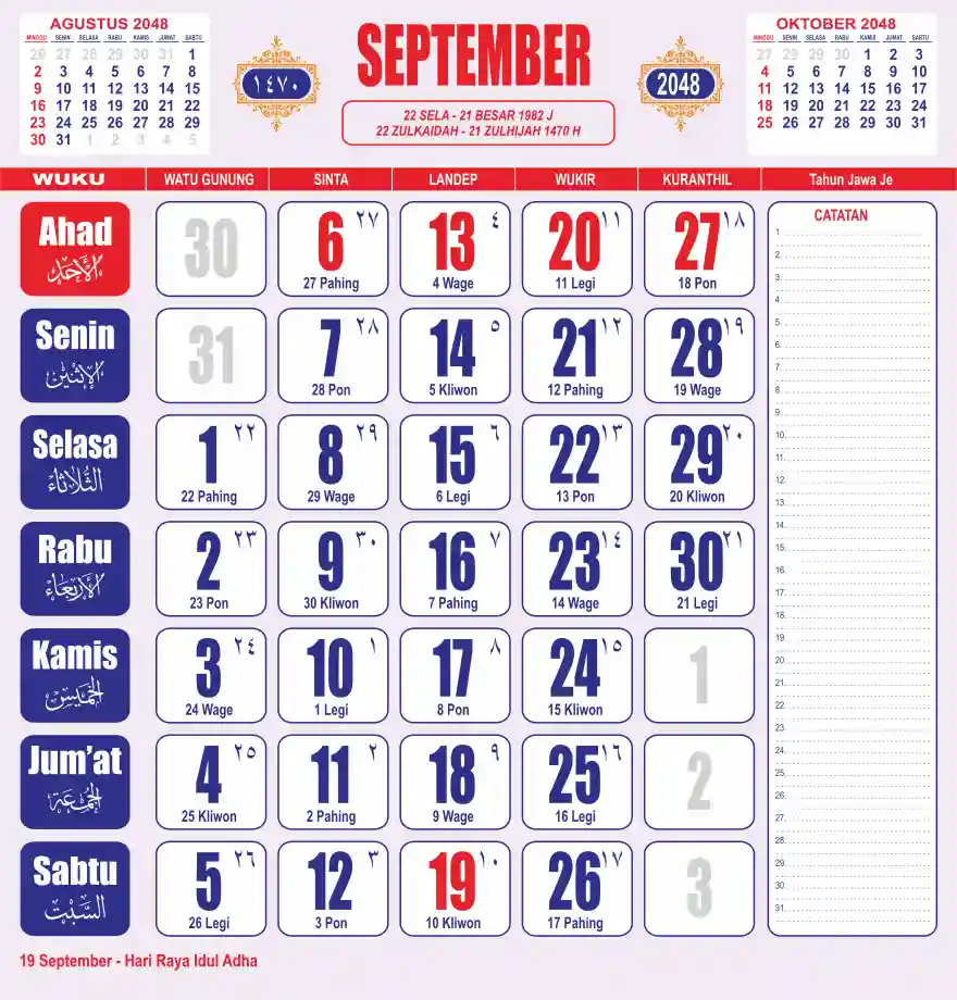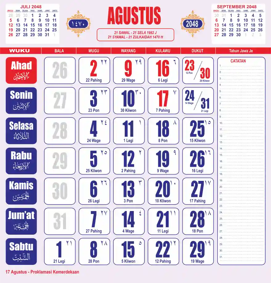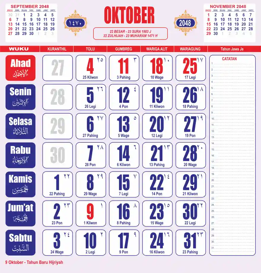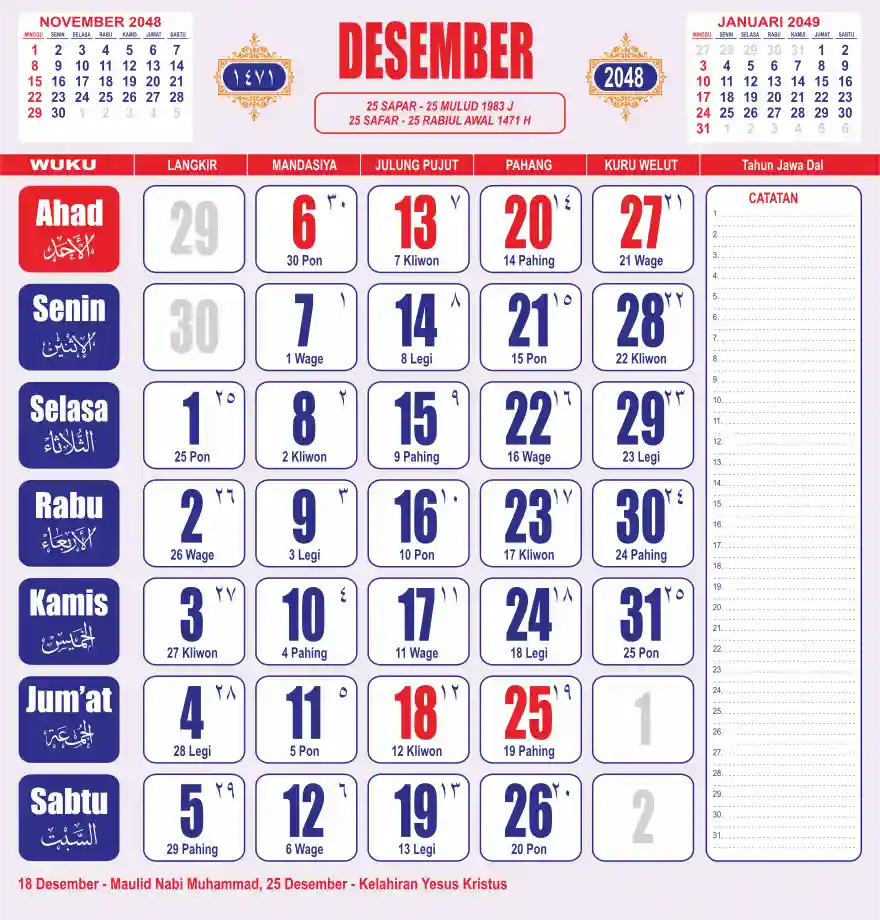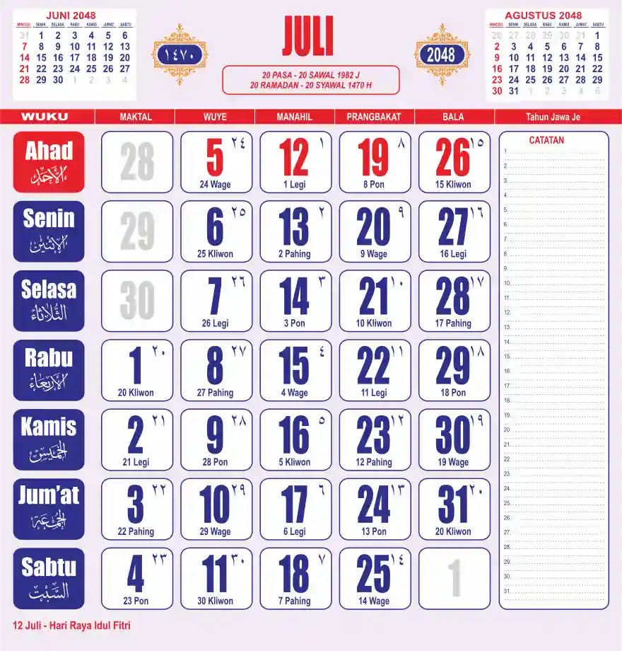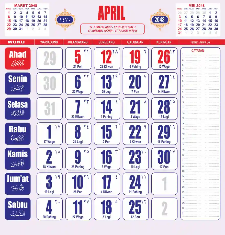 Template kalender 2048 lembaran besar jumbo yang sering dipakai oleh masyarakat jawa lengkap dengan wuku. Kalender ini biasanya di cetak 1 lembar per bulan.