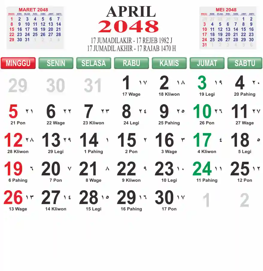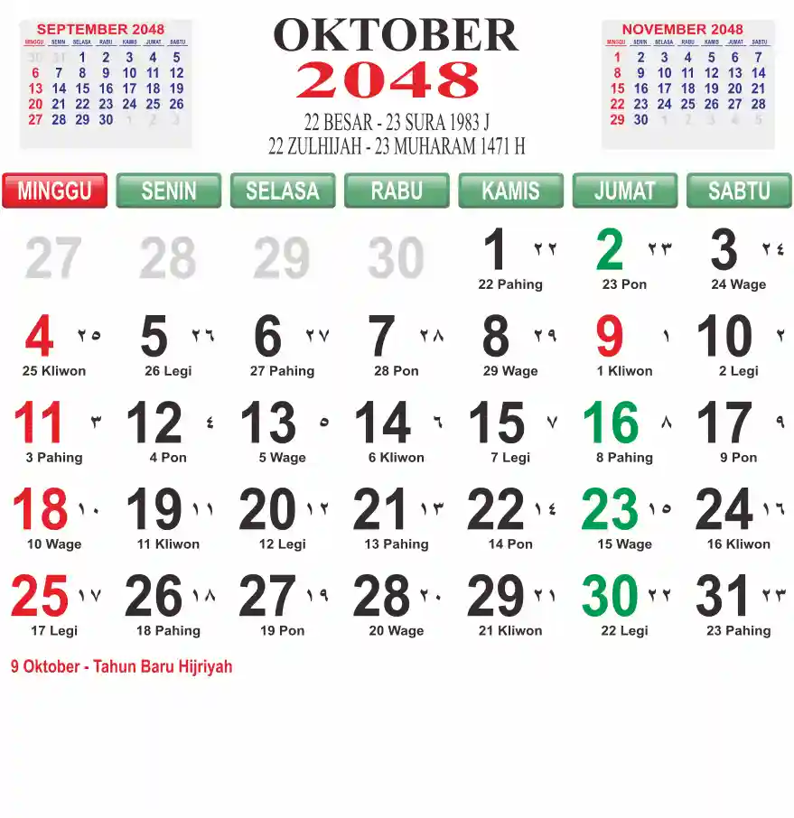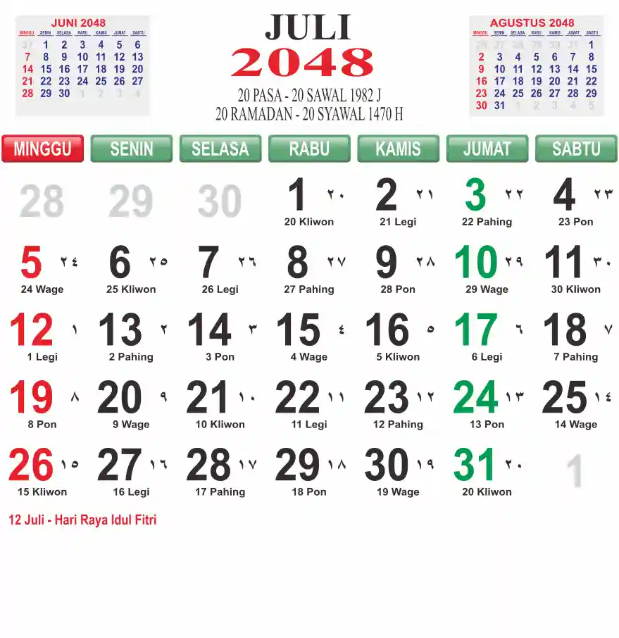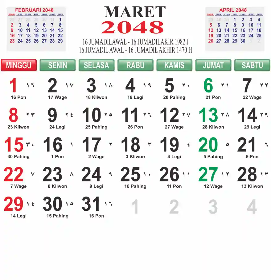 Template kalender 2048 lembaran besar jumbo yang mudah di baca dari jarak jauh. Kalender ini biasanya di cetak 1 lembar per bulan.