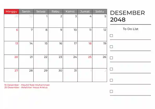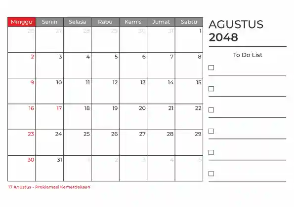 Template kalender 2048 duduk planner. Ada space kosong yang bisa di isi untuk menulis catatan dan ada space untuk menulis to do list.