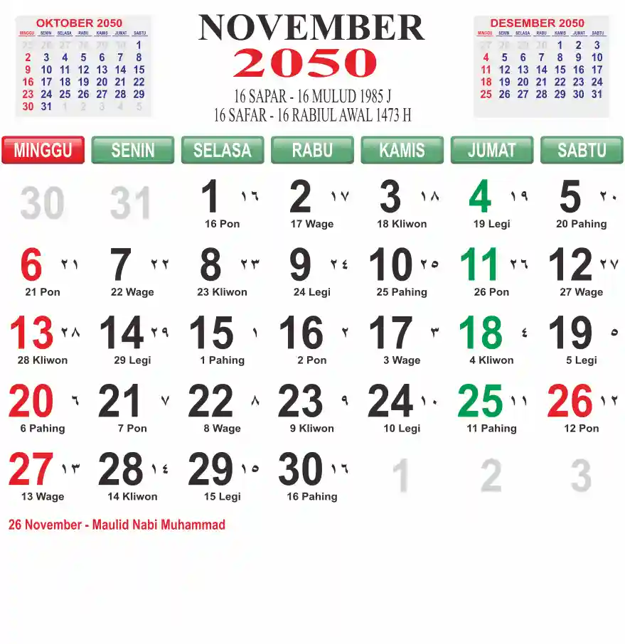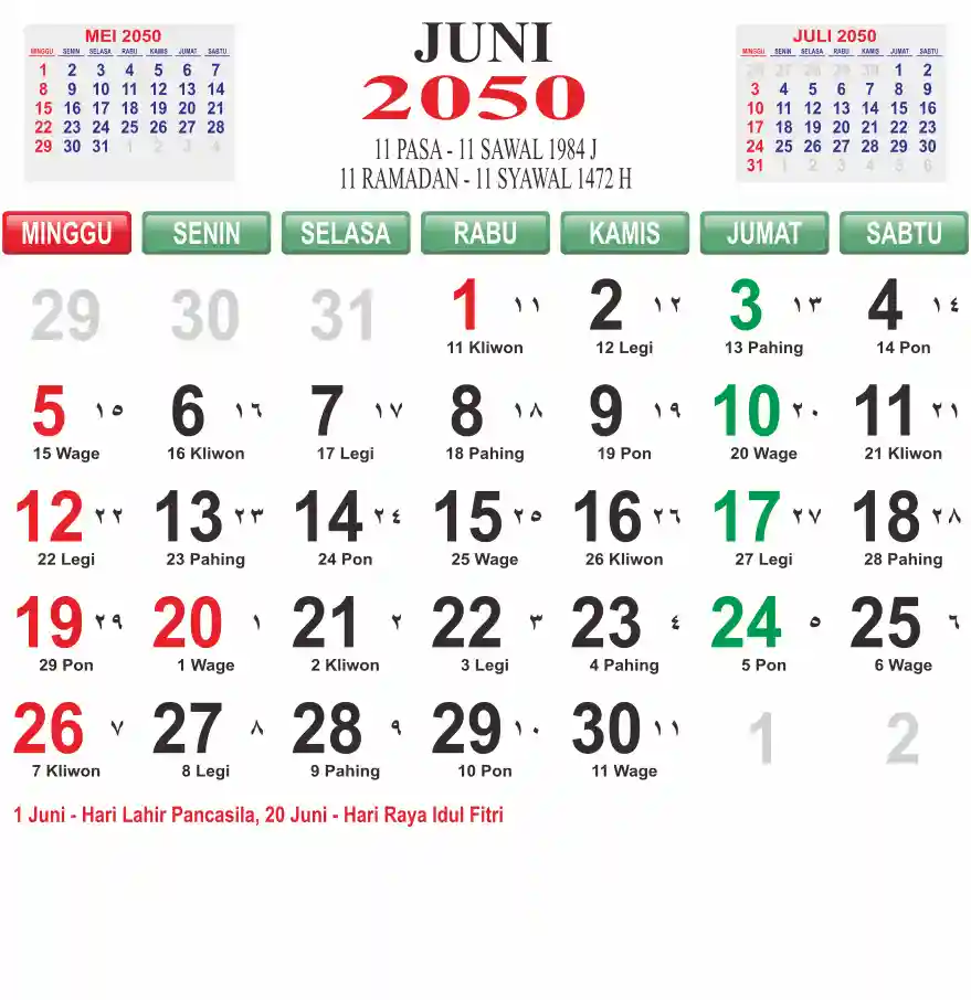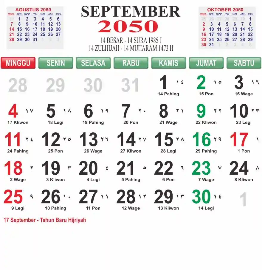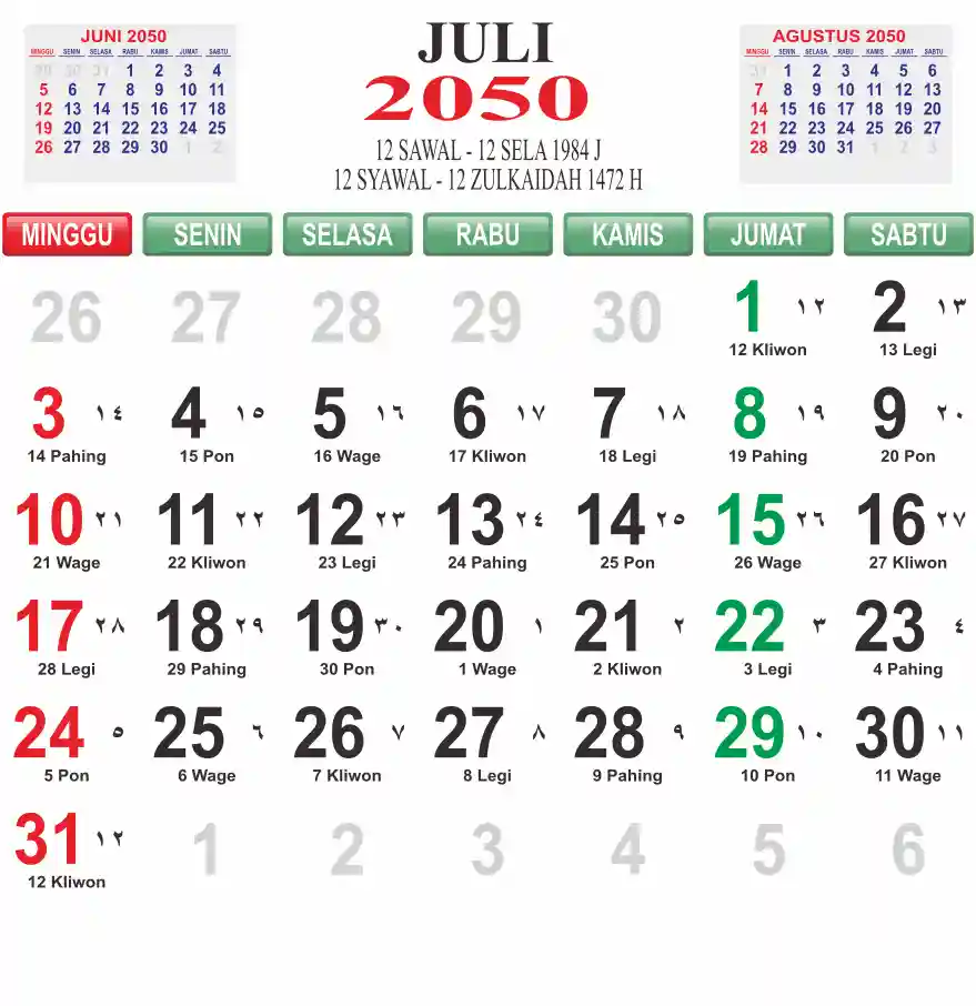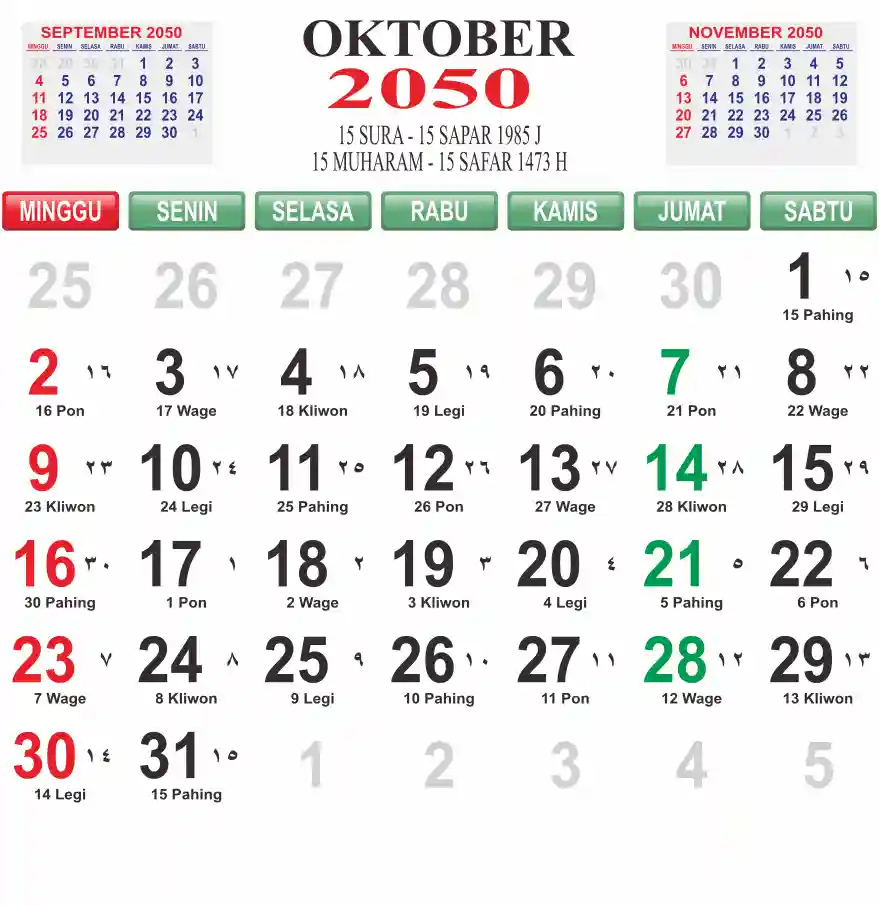 Template kalender 2050 lembaran besar jumbo yang mudah di baca dari jarak jauh. Kalender ini biasanya di cetak 1 lembar per bulan.