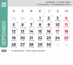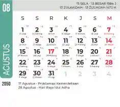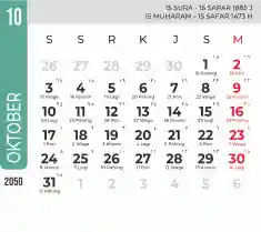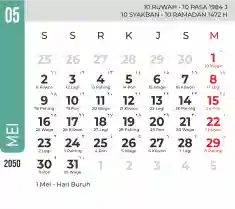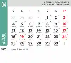 Template kalender 2050 dengan konsep minimalis modern dengan warna yang soft, cocok sekali buat kantor / bisnis seperti bank.