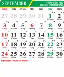 Tema kalender 2051 yang nuansa Islami yang cocok buat pondok pesantren atau lembaga keagamaan. Menggunakan font standar Times New Roman yang mudah dibaca.